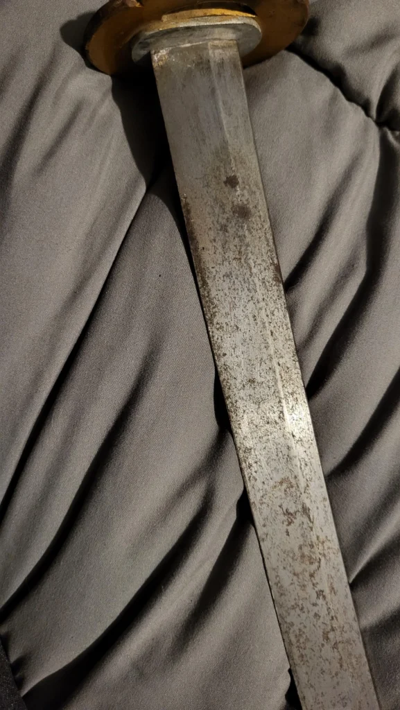 – Kiếm Nhật truyền thống được rèn từ thép carbon cao – loại thép cho độ cứng và khả năng giữ lưỡi vượt trội, nhưng không pha crom hoặc niken như thép không gỉ. Chính vì không pha hợp kim nên bề mặt lưỡi dễ bị rỉ nếu tiếp xúc ẩm, mồ hôi tay hoặc không được bảo dưỡng đúng cách.