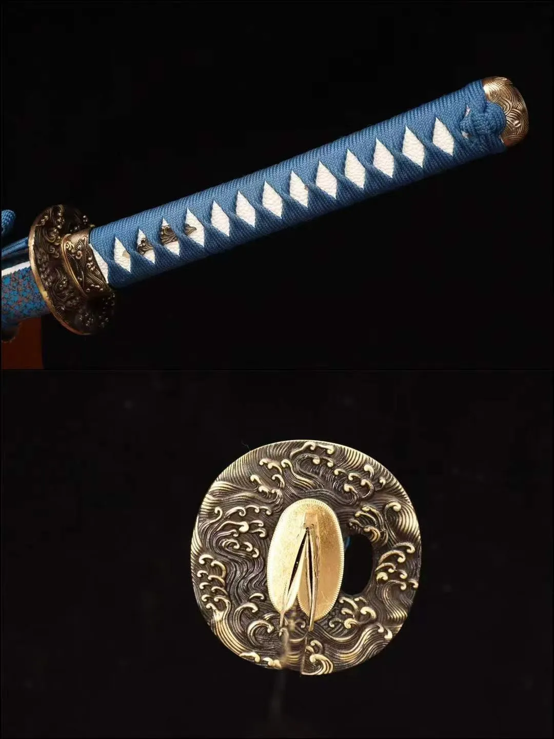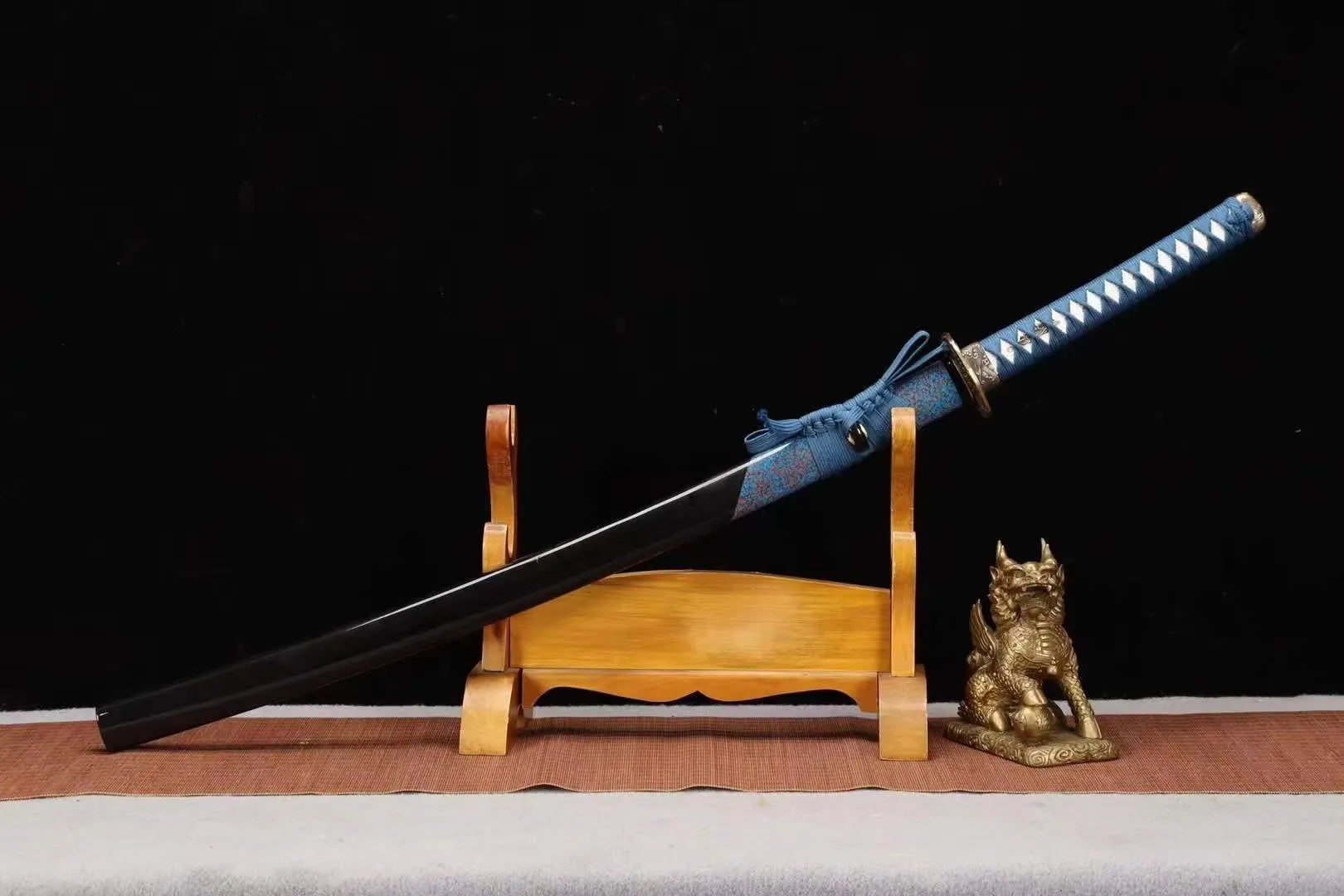 Loại kiếm: Katana, rèn tay truyền thống , chất liệu lưỡi thép: T10, hamon đất nung – độ cứng & độ sắc tiêu chuẩn, có thể tùy chỉnh theo yêu cầu
