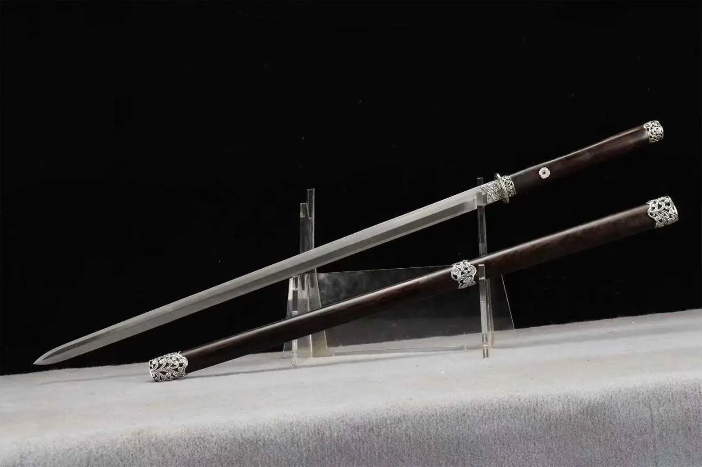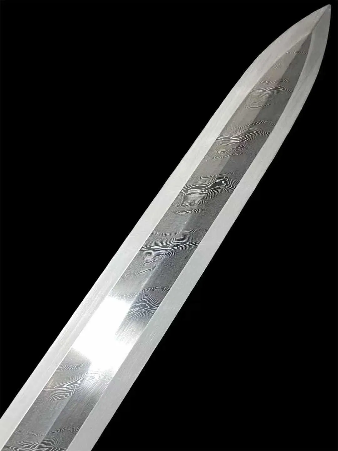 Bạch Ảnh Trường Kiếm là mẫu trường kiếm mang sắc trầm cổ kính và ánh bạc tinh , dành cho người yêu phong cách thanh tao nhưng vẫn đầy uy lực. Lưỡi kiếm rèn từ thép gấp hoa văn, tạo nên những lớp vân sóng nổi bật, vừa giàu tính thẩm mỹ vừa cho độ ổn định cao khi sử dụng – phù hợp trưng bày, sưu tầm và luyện tập nhẹ.