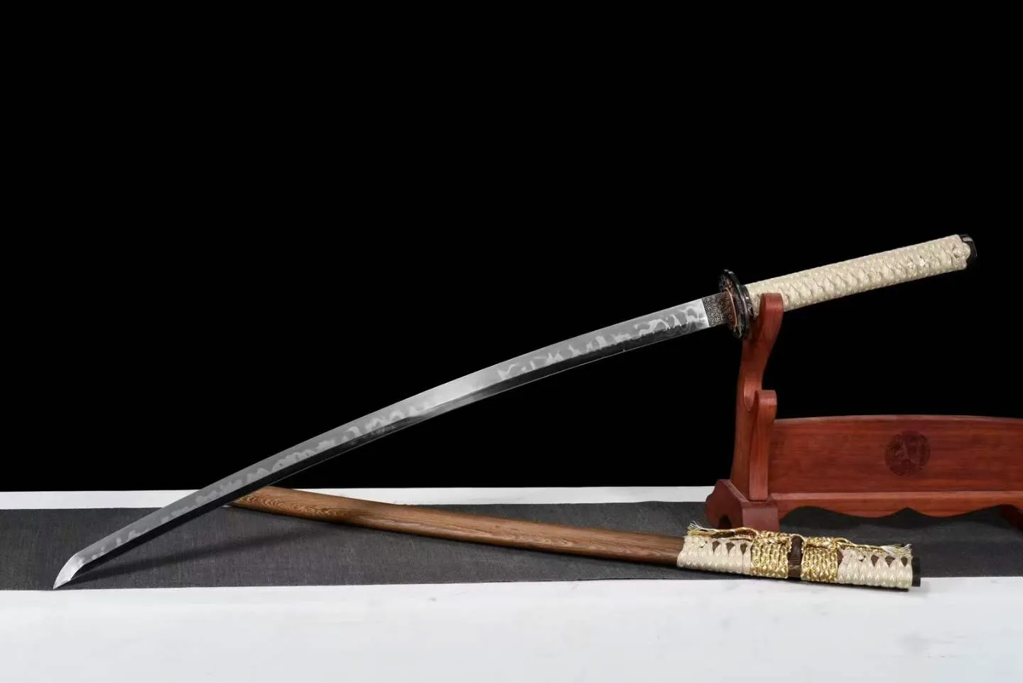 Loại kiếm: Katana, fulltang, rèn tay truyền thống , chất liệu lưỡi thép: Thép T10, hamon đất nung – độ cứng cao & độ sắc tiêu chuẩn, có thể tùy chỉnh theo yêu cầu