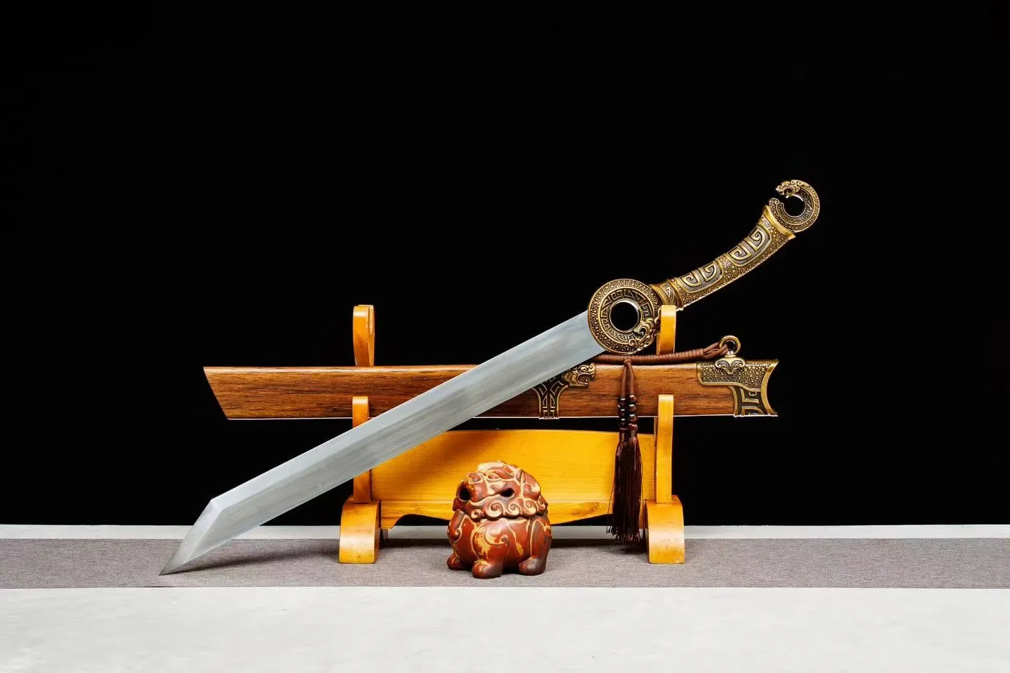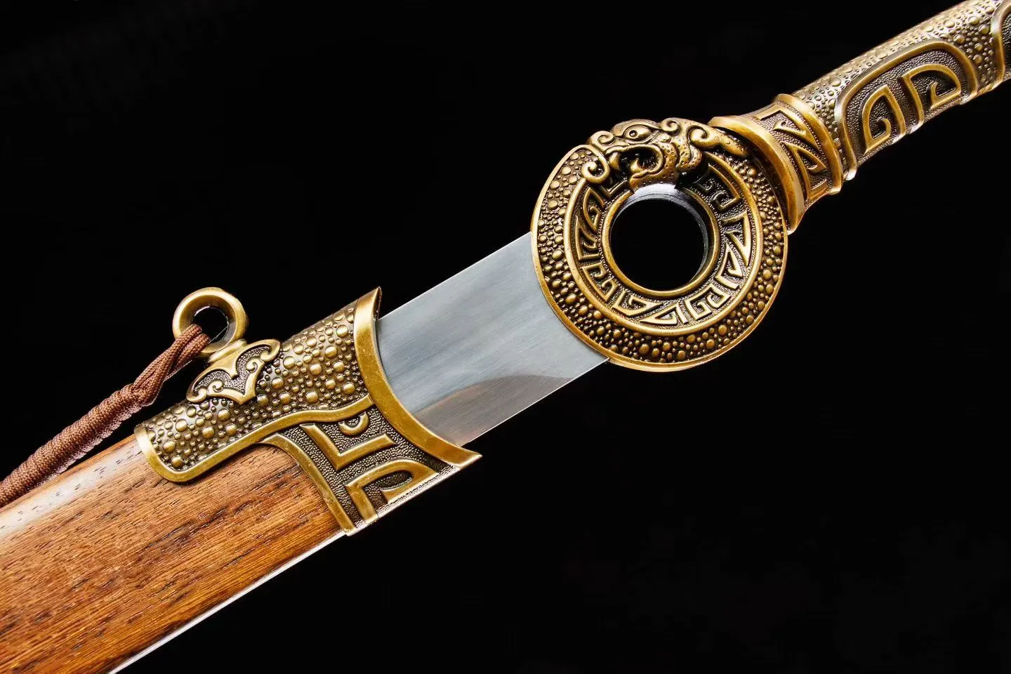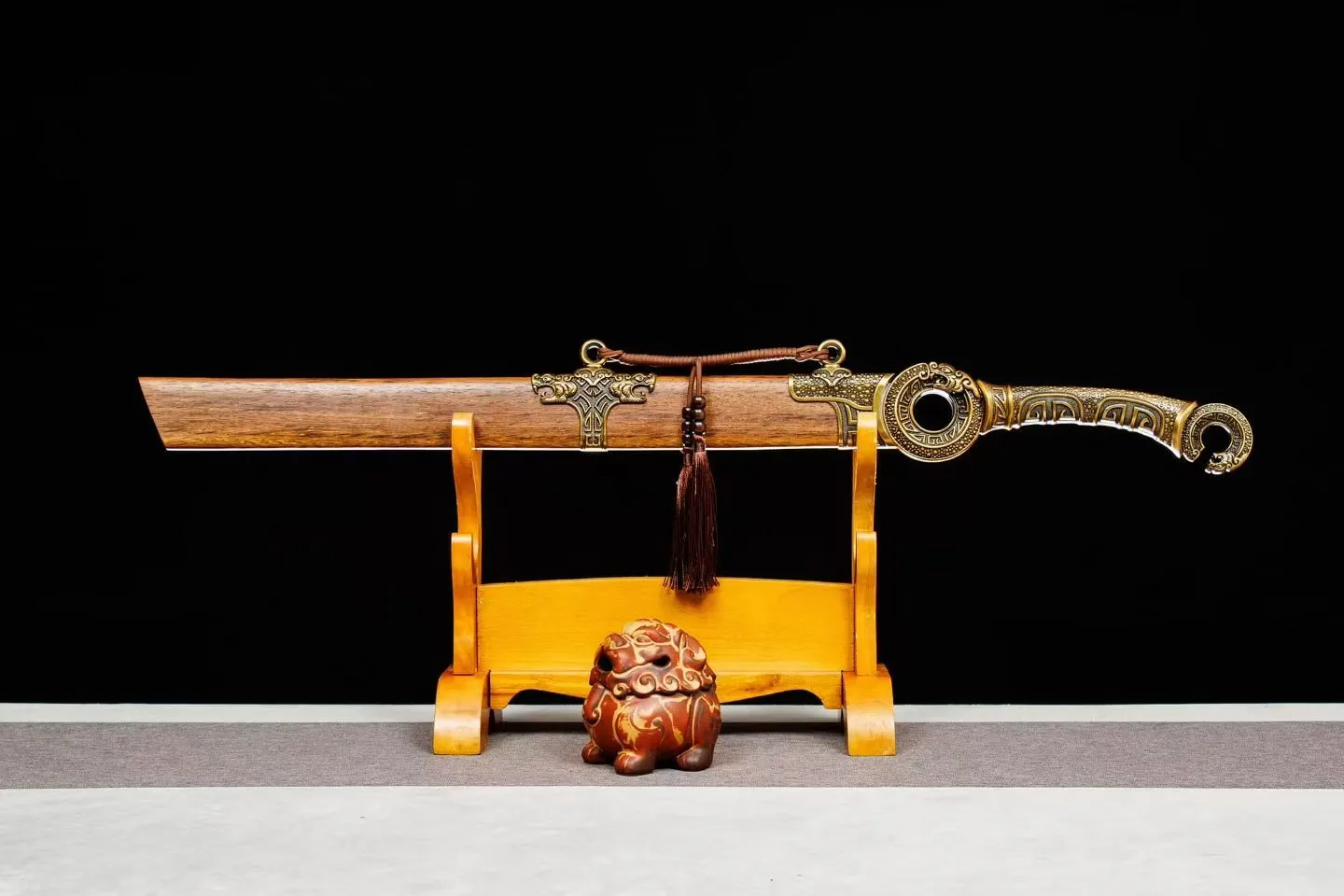 Bao kiếm: Gỗ hoa lê ốp phụ kiện hợp kim | Tay cầm : hợp kim  | Chắn lưỡi: Hợp kim