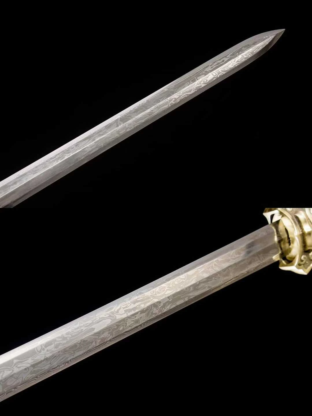 Loại kiếm: Hán, fulltang, rèn tay truyền thống , chất liệu lưỡi thép: Thép gấp hoa văn