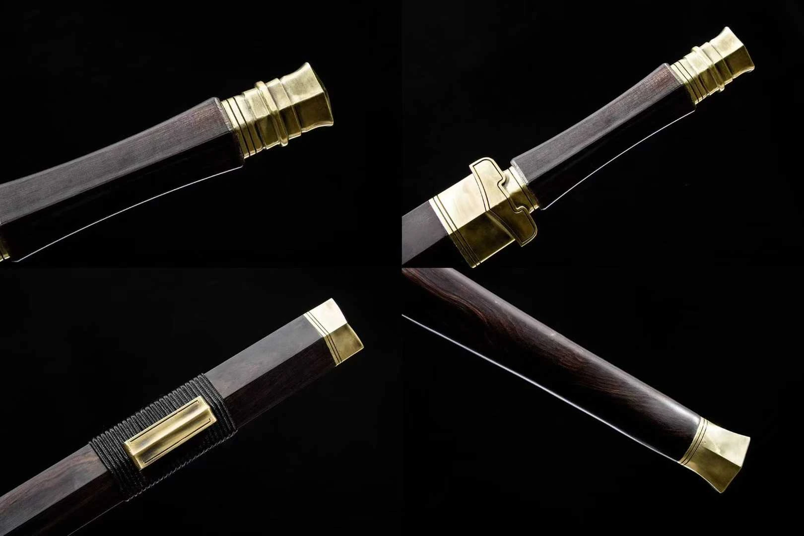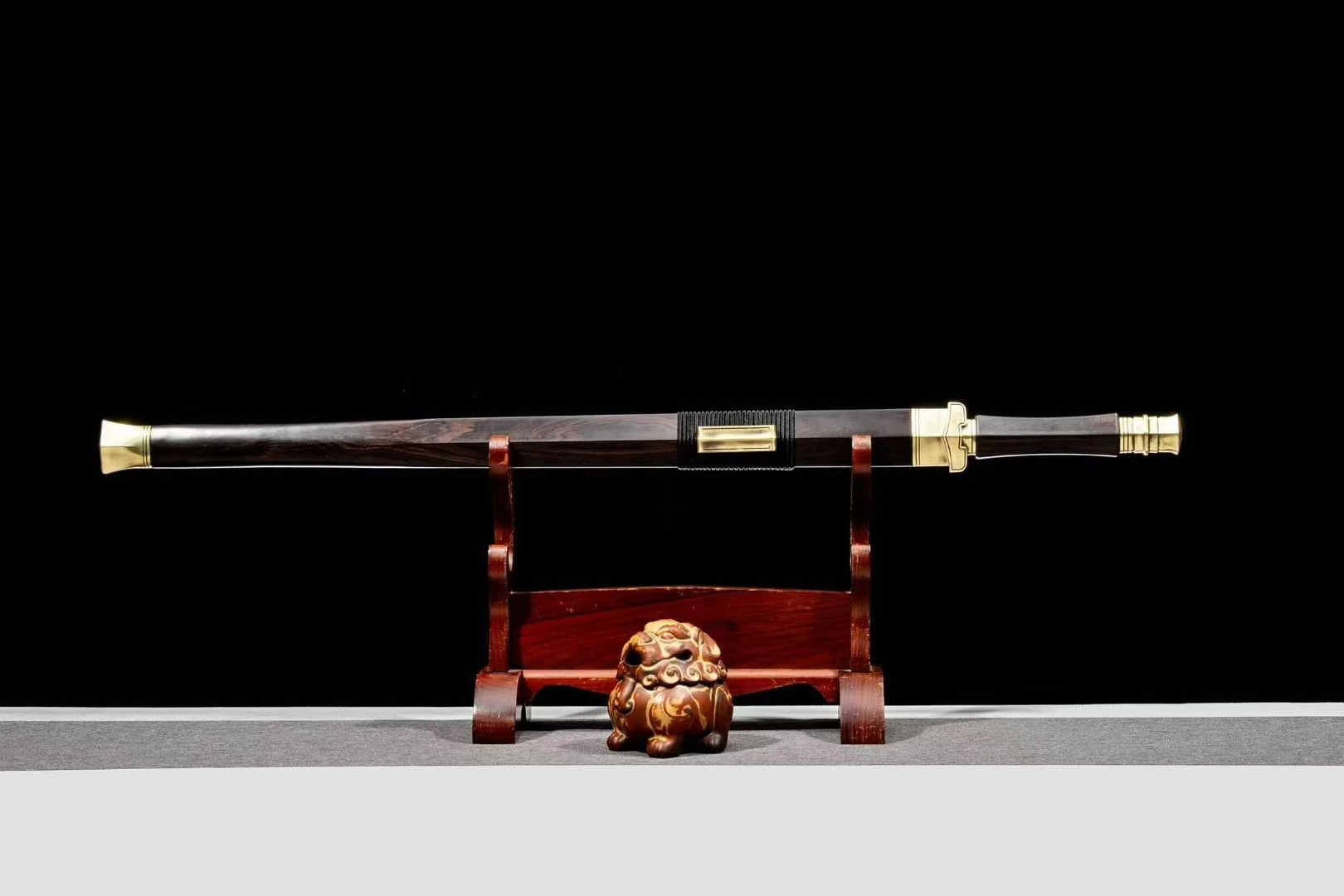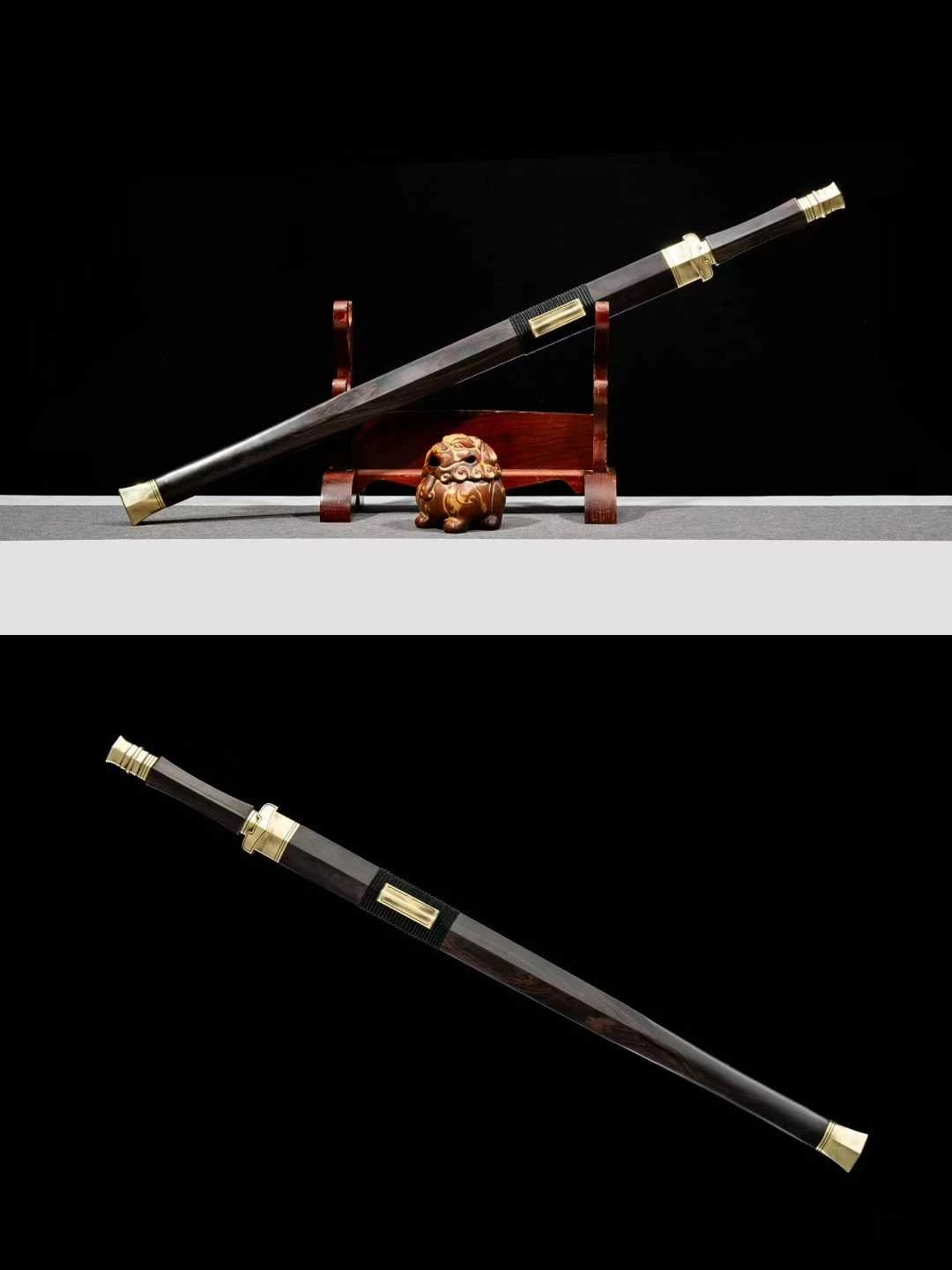 Lấy cảm hứng từ tinh hoa vũ khí thời nhà Hán, thanh bảo kiếm này mang thiết kế kiếm thẳng song nhận đặc trưng, được chế tác thủ công tỉ mỉ, từng chi tiết tái hiện tinh thần cổ xưa kết hợp với chất liệu hiện đại để đạt độ bền và độ sắc tối ưu. Lưỡi của thanh Hán Kiếm này rèn thép gấp hoa văn Damascus với đường vân chạy dọc, bề mặt mài bóng, cạnh sắc bén, mũi nhọn đối xứng. Chuôi gỗ cứng cao cấp, dáng thon, bọc chặt bằng ốp đồng thau mạ vàng cổ, đảm bảo độ bền chặt cho thanh Hán Kiếm và đem lại cảm giác đầm khi cầm trên tay. Hộ thủ thiết kế bản dẹt thời Hán, đơn giản nhưng chắc chắn, giữ an toàn cho tay cầm. Vỏ làm từ gỗ mun gắn phụ kiện đồng thau đồng bộ với chuôi, tạo sự sang trọng và cổ điển. Phù hợp cho trưng bày sưu tầm, biểu diễn võ thuật cổ truyền, hoặc làm quà tặng giá trị cho những ai yêu thích lịch sử và văn hóa vũ khí phương Đông.