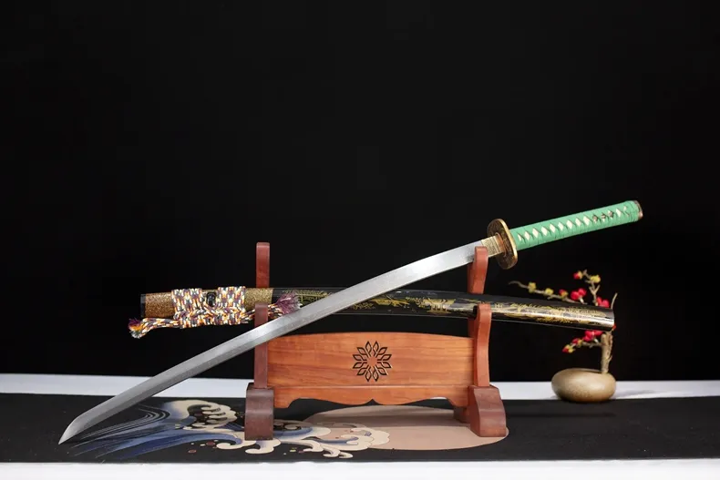 Loại kiếm: Katana, fulltang, rèn tay truyền thống , chất liệu lưỡi thép: Hoa Văn tạo hình bởi laser – độ cứng cao & độ sắc tiêu chuẩn, có thể tùy chỉnh theo yêu cầu