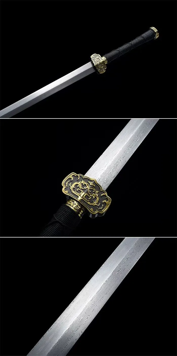Loại kiếmHán Kiếm, fulltang, rèn tay truyền thống , chất liệu lưỡi thép: Thép Hoa Văn