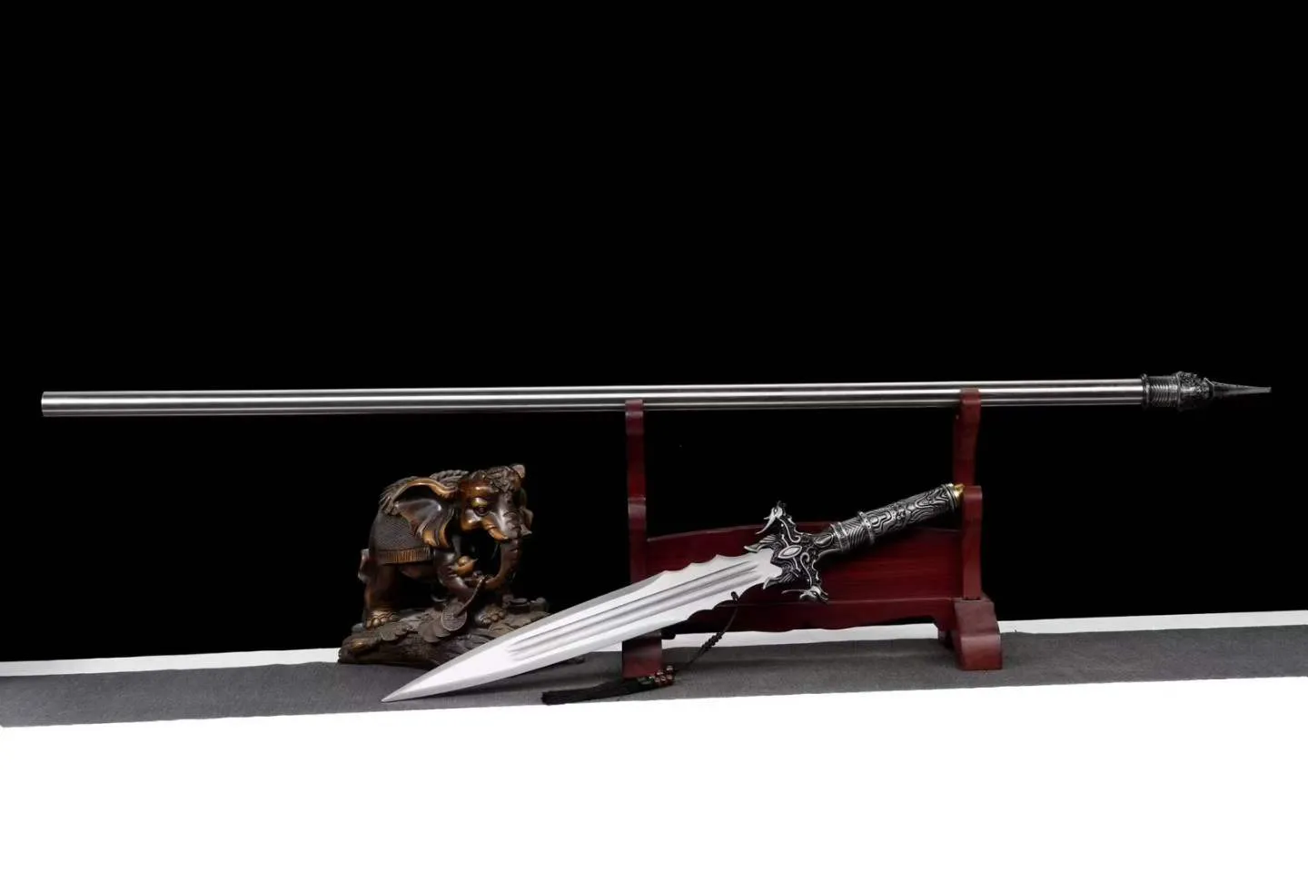 Huyền Vũ Chiến Kích là mẫu chiến khí mang phong thái mạnh mẽ, thích hợp cho người yêu thích phong cách vũ khí cổ phối hợp thiết kế hiện đại. Phần lưỡi kích được rèn từ thép mangan, nổi bật với độ bền cao, khả năng chịu lực tốt và giữ sắc lâu dài. Thiết kế lưỡi đa tầng tạo điểm nhấn mạnh mẽ, phù hợp cho trưng bày, sưu tầm hoặc làm đạo cụ chụp ảnh.