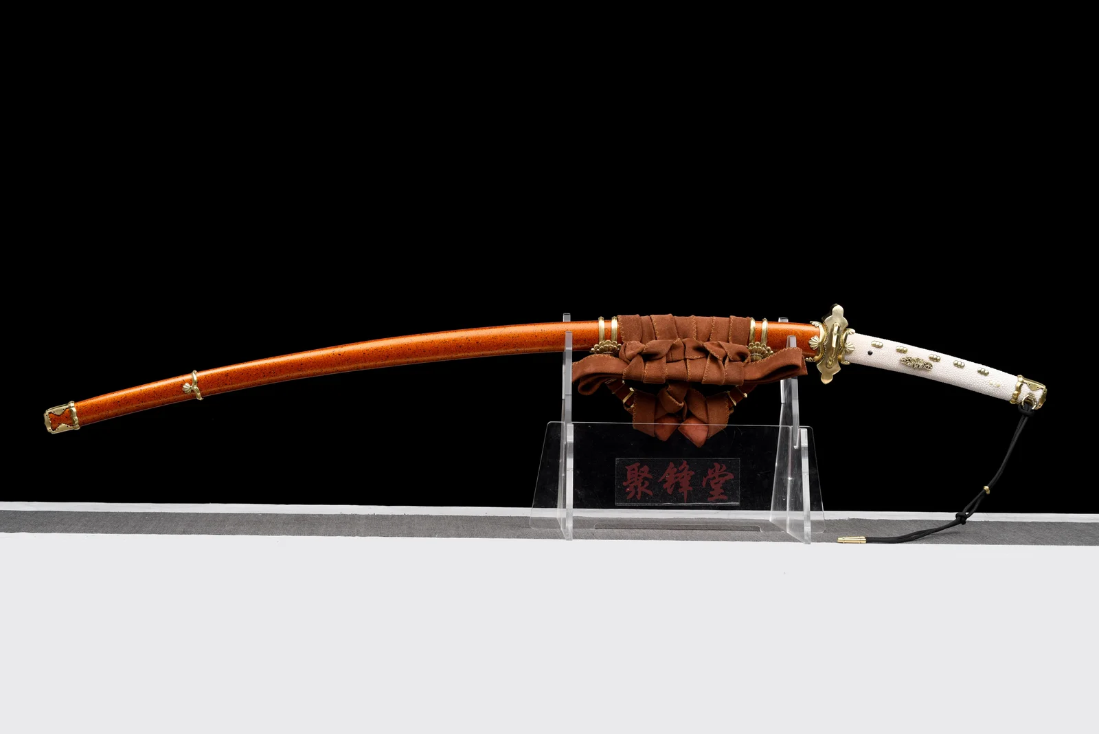 Bao kiếm: Gỗ sơn mài, phụ kiện đồng vàng | Tay cầm : Gỗ bọc da cá đuối | Habaki/Tsuba : Đồng thau mạ vàng
