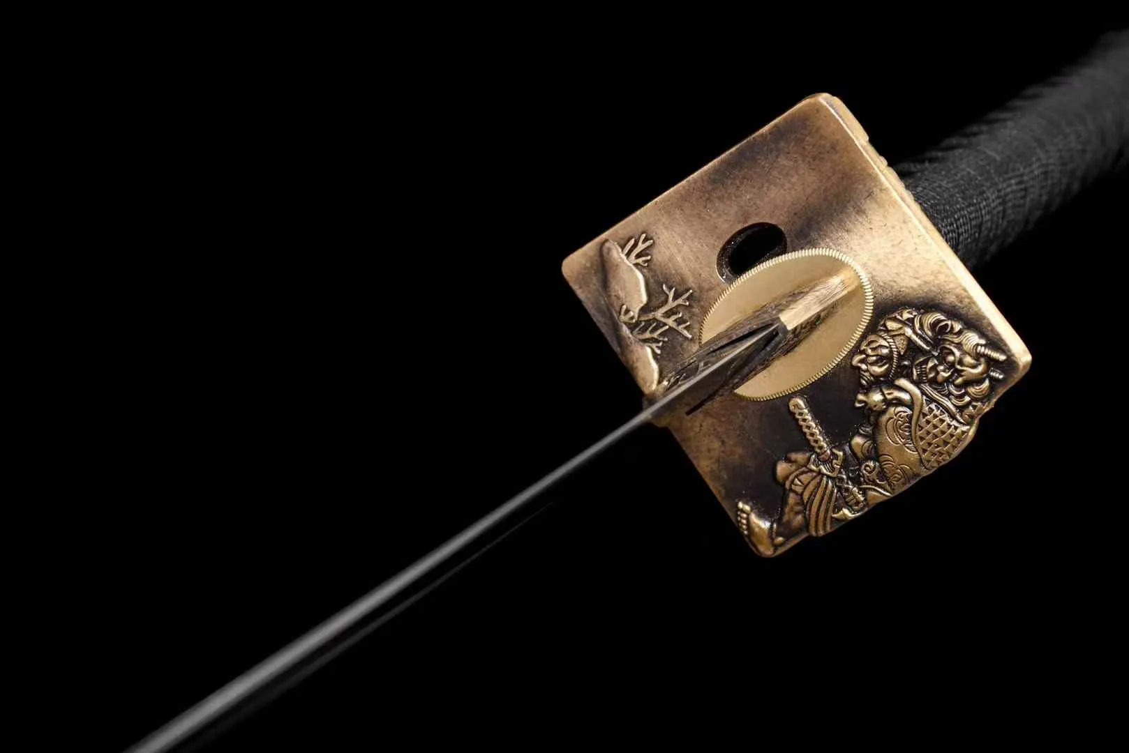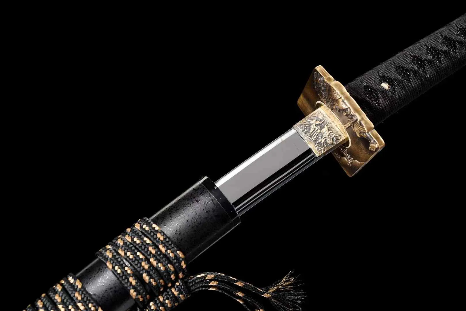 - Bao kiếm: Gỗ cứng sơn đen buộc sageo | Tay cầm : Gỗ quấn dây | Habaki/Tsuba : Đồng thau