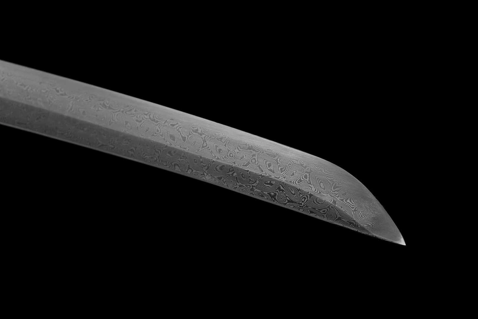 - Loại kiếm: Katana, fulltang, rèn tay truyền thống , chất liệu lưỡi thép: Thép gấp hoa văn Damascus – độ cứng cao & độ sắc tiêu chuẩn, có thể tùy chỉnh theo yêu cầu