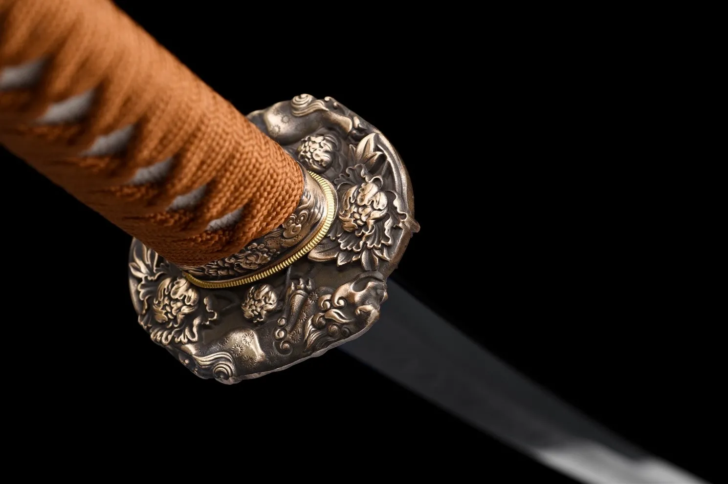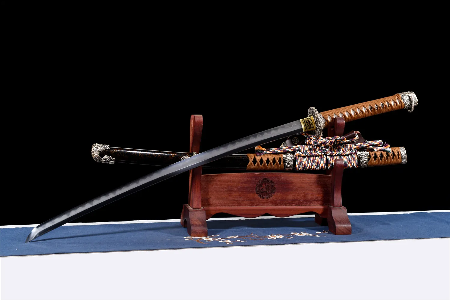 Loại kiếm: Handachi, fulltang, rèn tay truyền thống , chất liệu lưỡi thép: Thép gấp hoa văn, hamon đất nung– độ cứng cao & độ sắc tiêu chuẩn, có thể tùy chỉnh theo yêu cầu