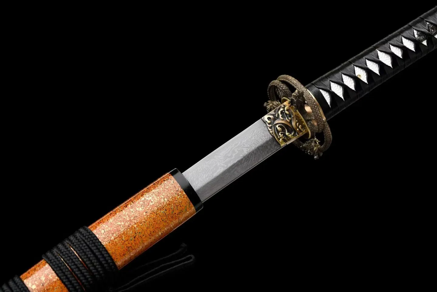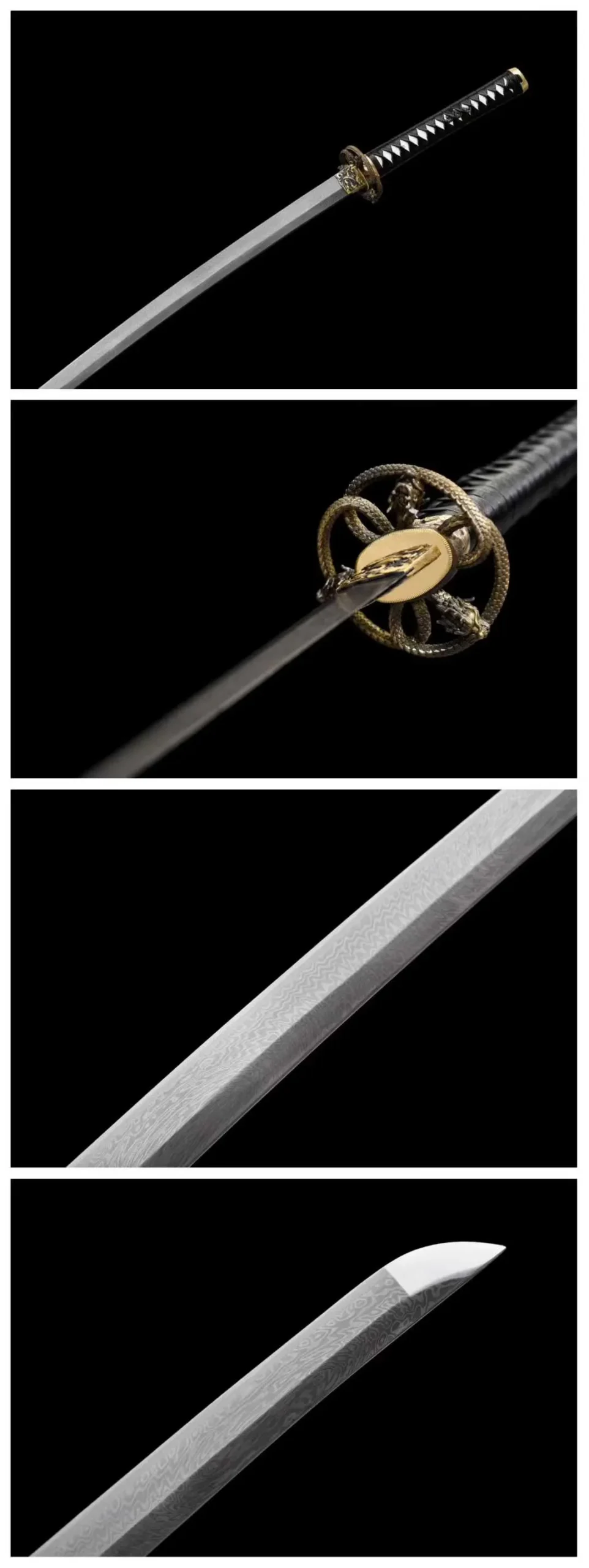 Loại kiếm: Katana, rèn tay truyền thống , chất liệu lưỡi thép: Gấp Hoa Văn Damascus – độ cứng & độ sắc tiêu chuẩn, có thể tùy chỉnh theo yêu cầu