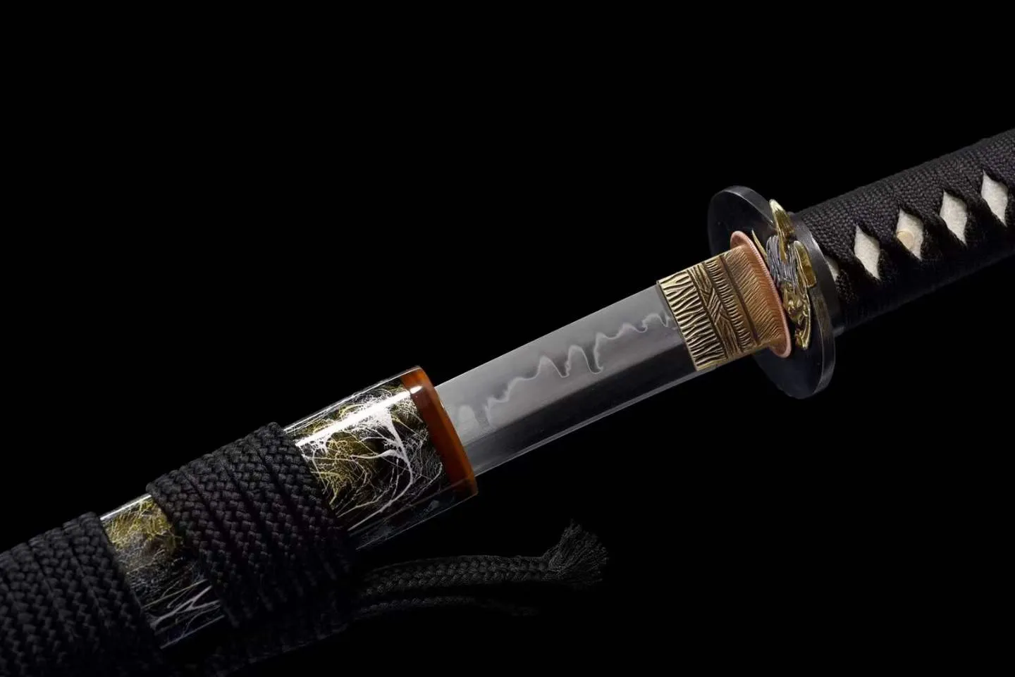 Loại kiếm: Katana, rèn tay truyền thống , chất liệu lưỡi thép: T10, hamon đất nung, mài 3 màu – độ cứng & độ sắc tiêu chuẩn, có thể tùy chỉnh theo yêu cầu