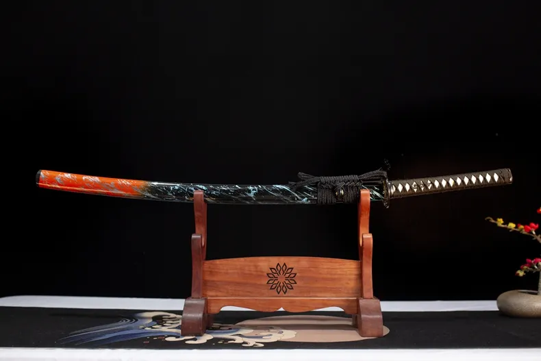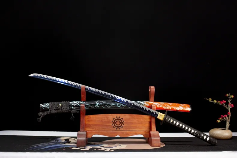 Loại kiếm: Katana, fulltang, rèn tay truyền thống , chất liệu lưỡi thép: Thép Mangan – độ cứng cao & độ sắc tiêu chuẩn, có thể tùy chỉnh theo yêu cầu