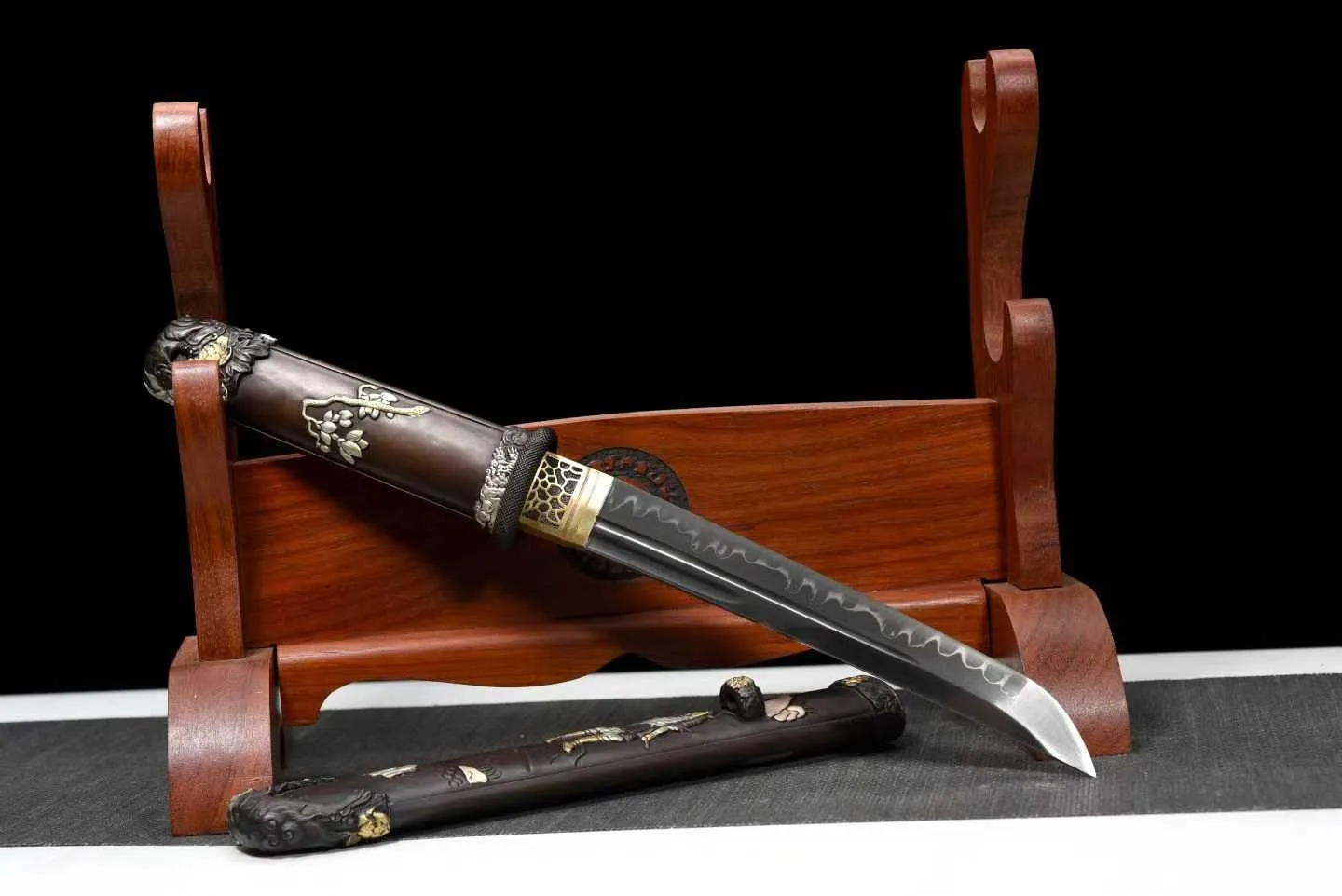 Loại kiếm: Tanto thủ công, fulltang, rèn tay truyền thống , chất liệu lưỡi thép: T10 hamon đất nung – cứng cáp, độ sắc tiêu chuẩn, có thể tùy chỉnh theo yêu cầu