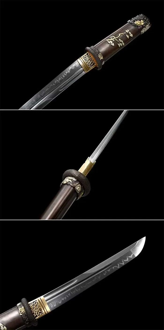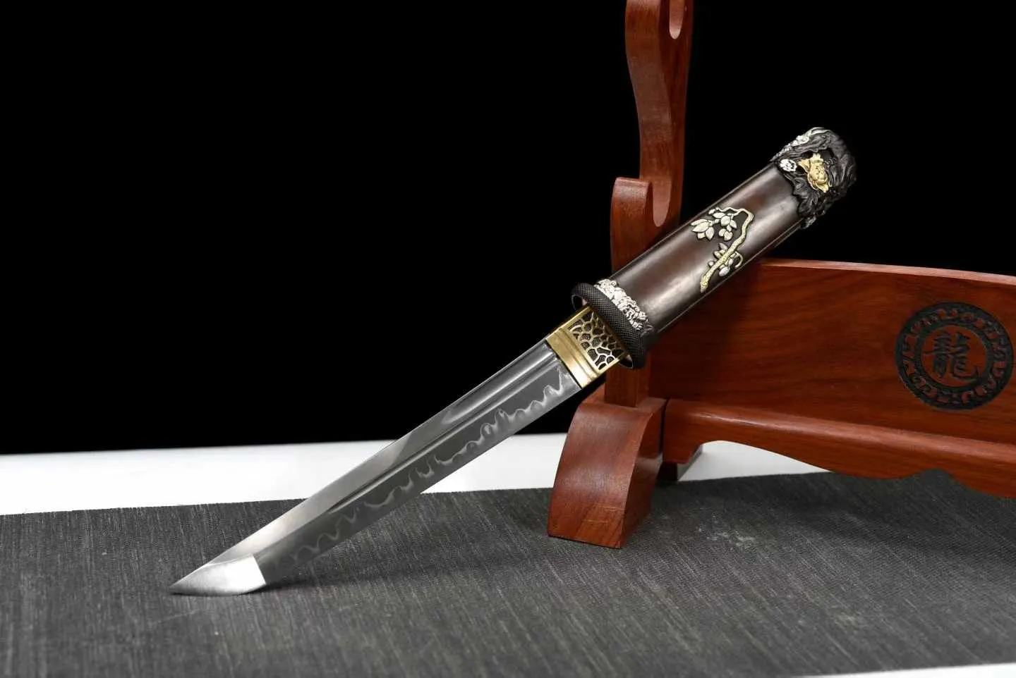 Loại kiếm: Tanto thủ công, fulltang, rèn tay truyền thống , chất liệu lưỡi thép: T10 hamon đất nung – cứng cáp, độ sắc tiêu chuẩn, có thể tùy chỉnh theo yêu cầu