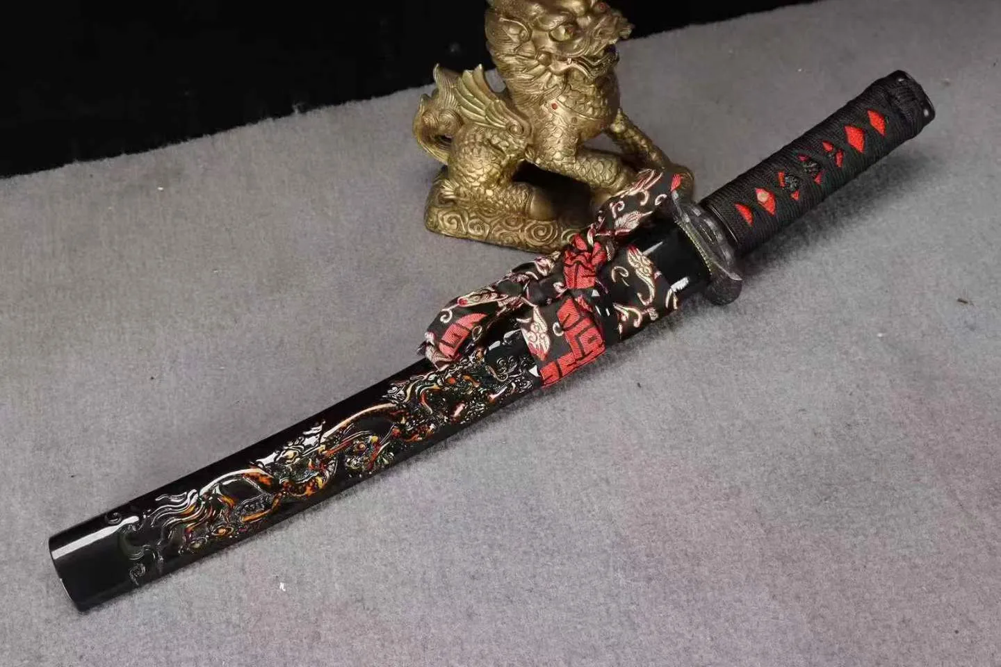 Bao kiếm: Gỗ cứng chạm khắc long văn | Tay cầm : gỗ tự nhiên | Habaki/Tsuba : Hợp kim
