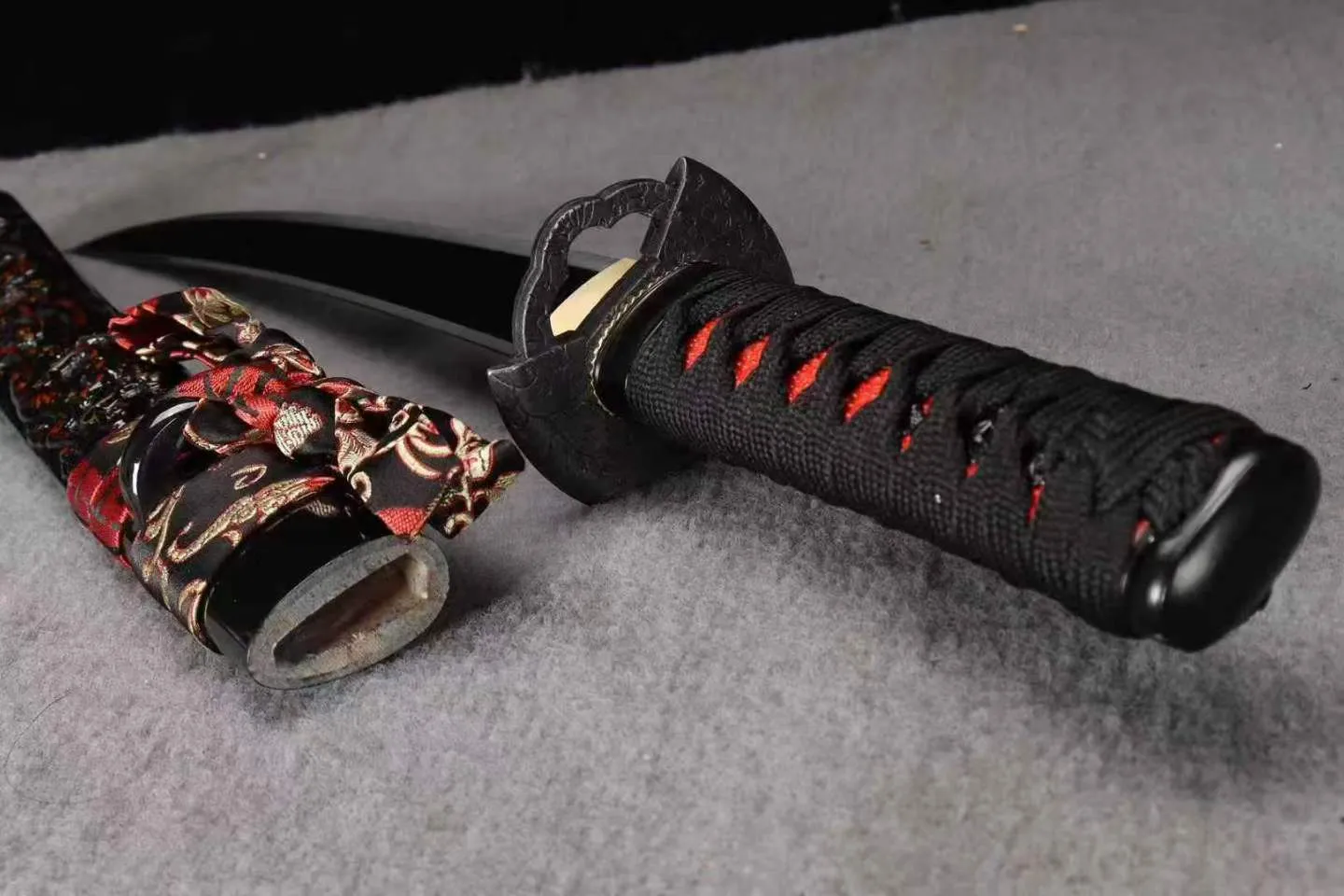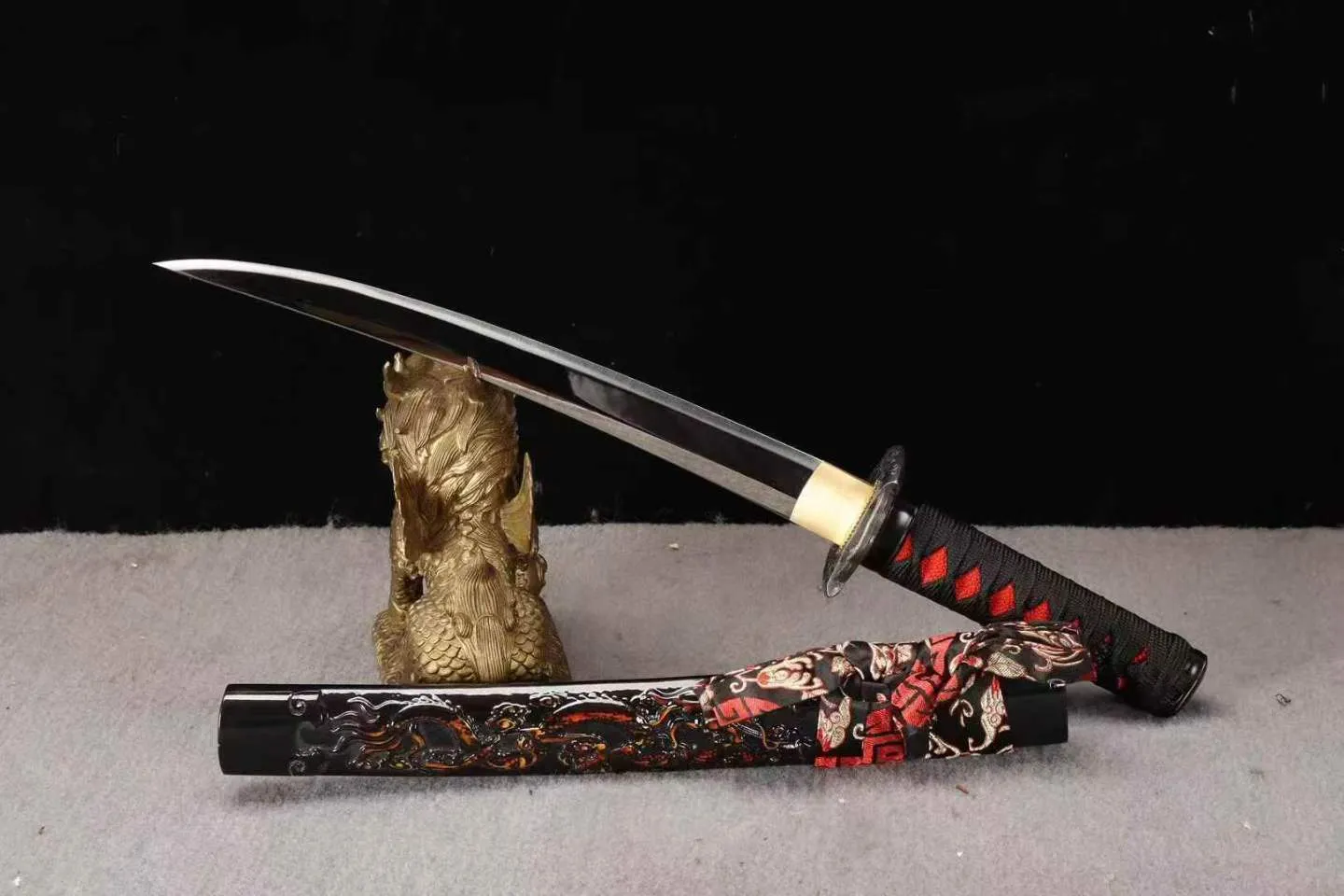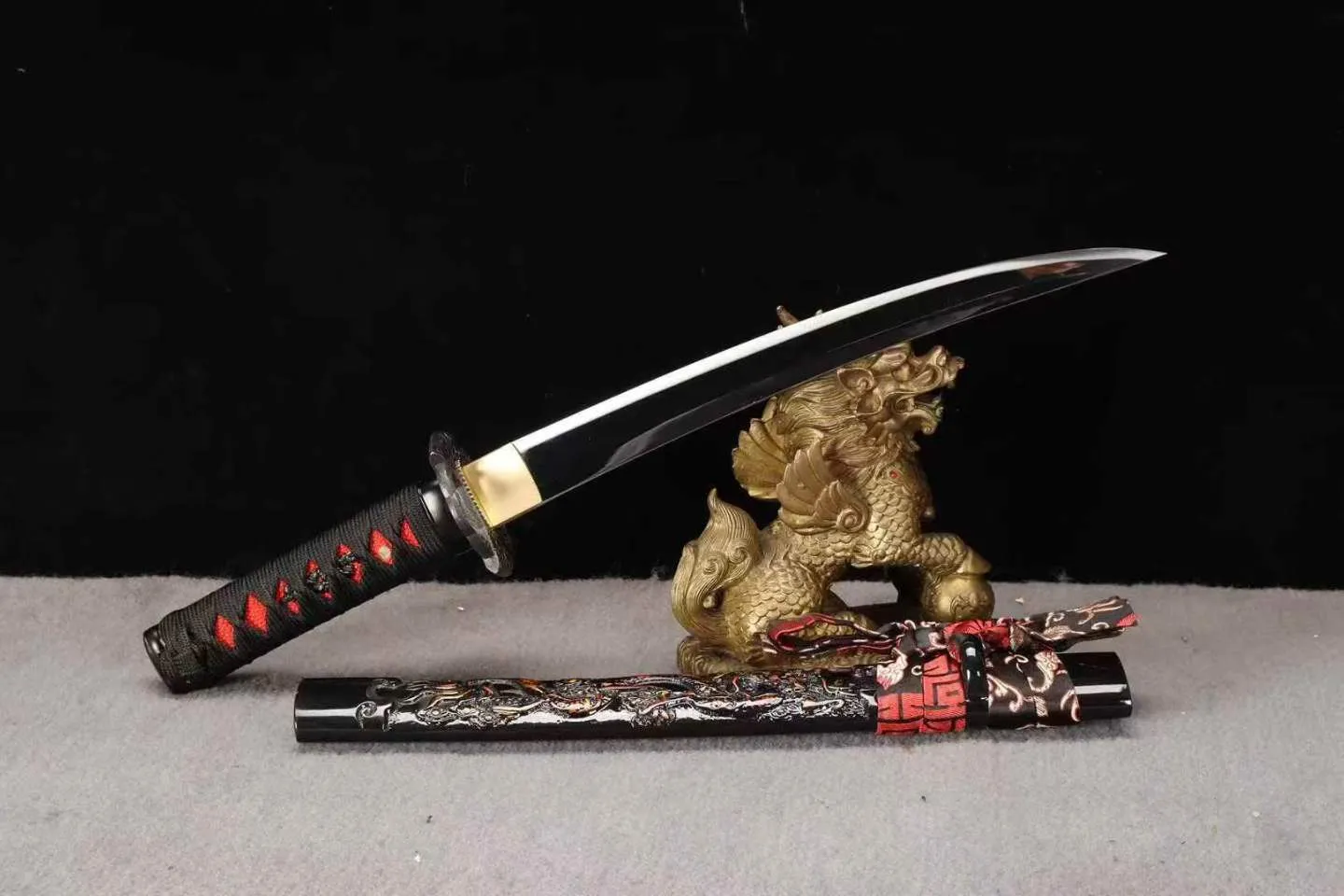 Phần hoàn thiện của tanto gồm bộ trang cụ thủ công, tay cầm quấn chắc, bao kiếm chạm khắc long văn nổi bật, đi kèm hộp gấm cao cấp. Tổng thể tanto hướng đến trưng bày, luyện tập và sưu tầm với mức hoàn thiện ổn định.