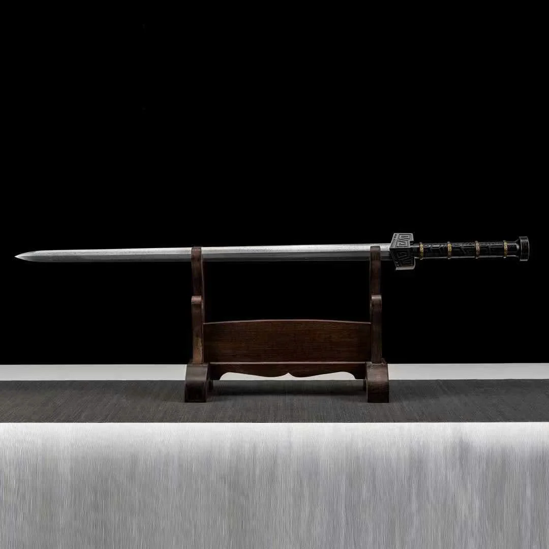 Loại kiếm: Hán Kiếm, fulltang, rèn tay truyền thống , chất liệu lưỡi thép: Thép Hoa Văn