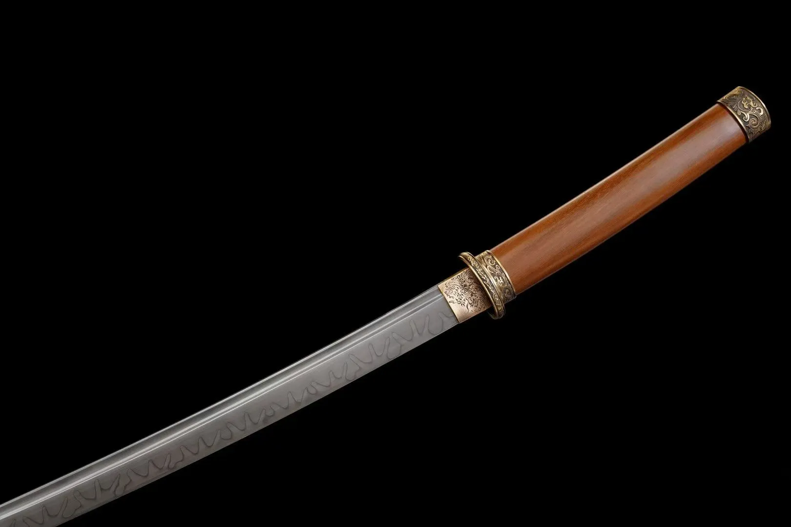 Loại kiếm: Katana, rèn tay truyền thống , chất liệu lưỡi thép: T10, hamon đất nung – độ cứng & độ sắc tiêu chuẩn, có thể tùy chỉnh theo yêu cầu