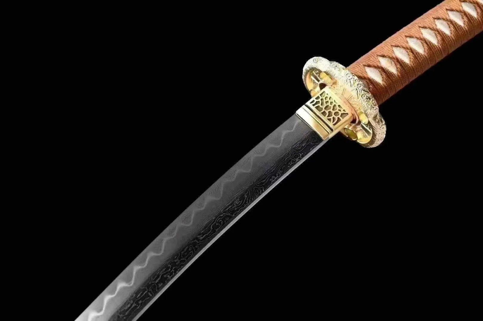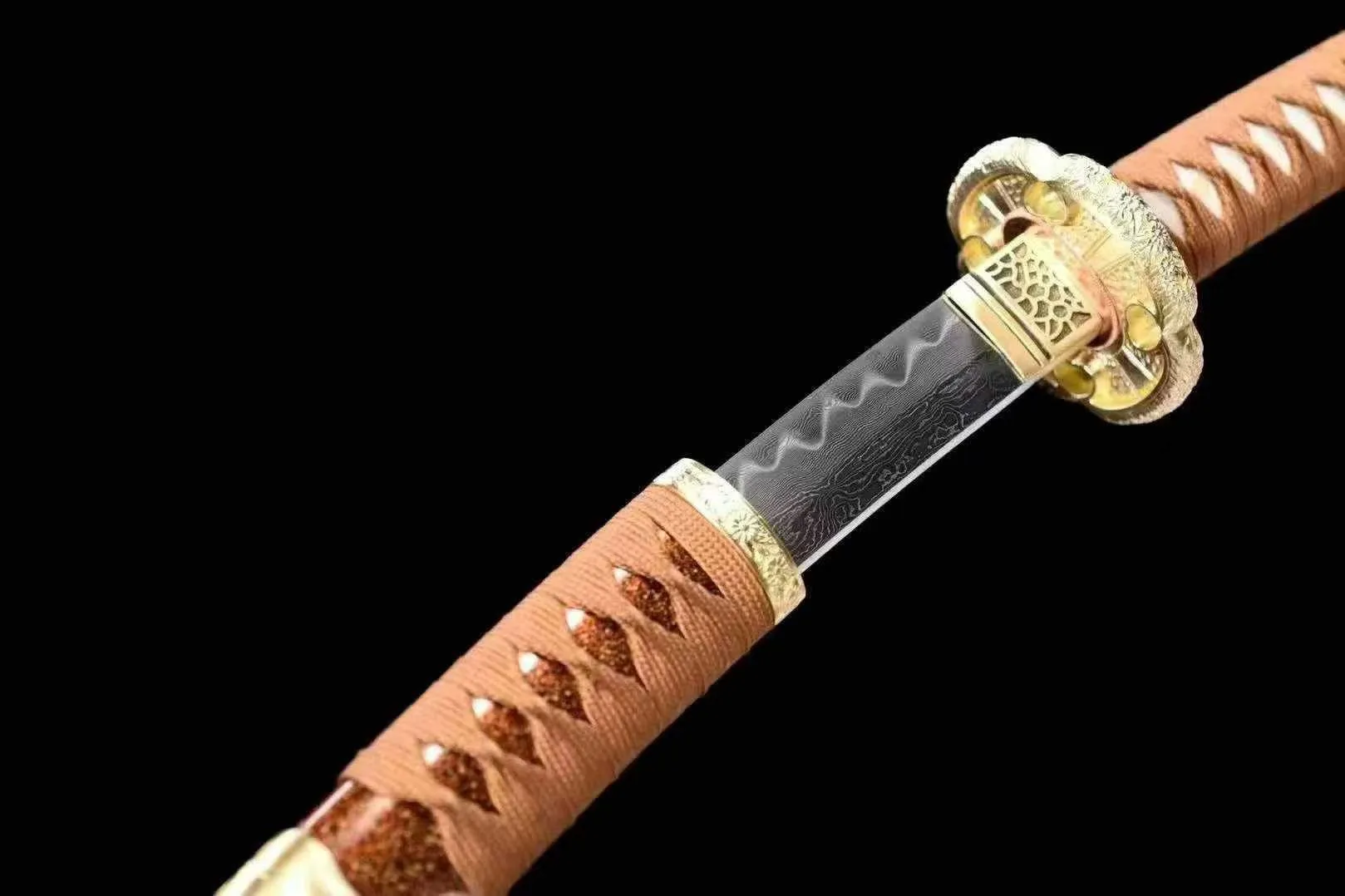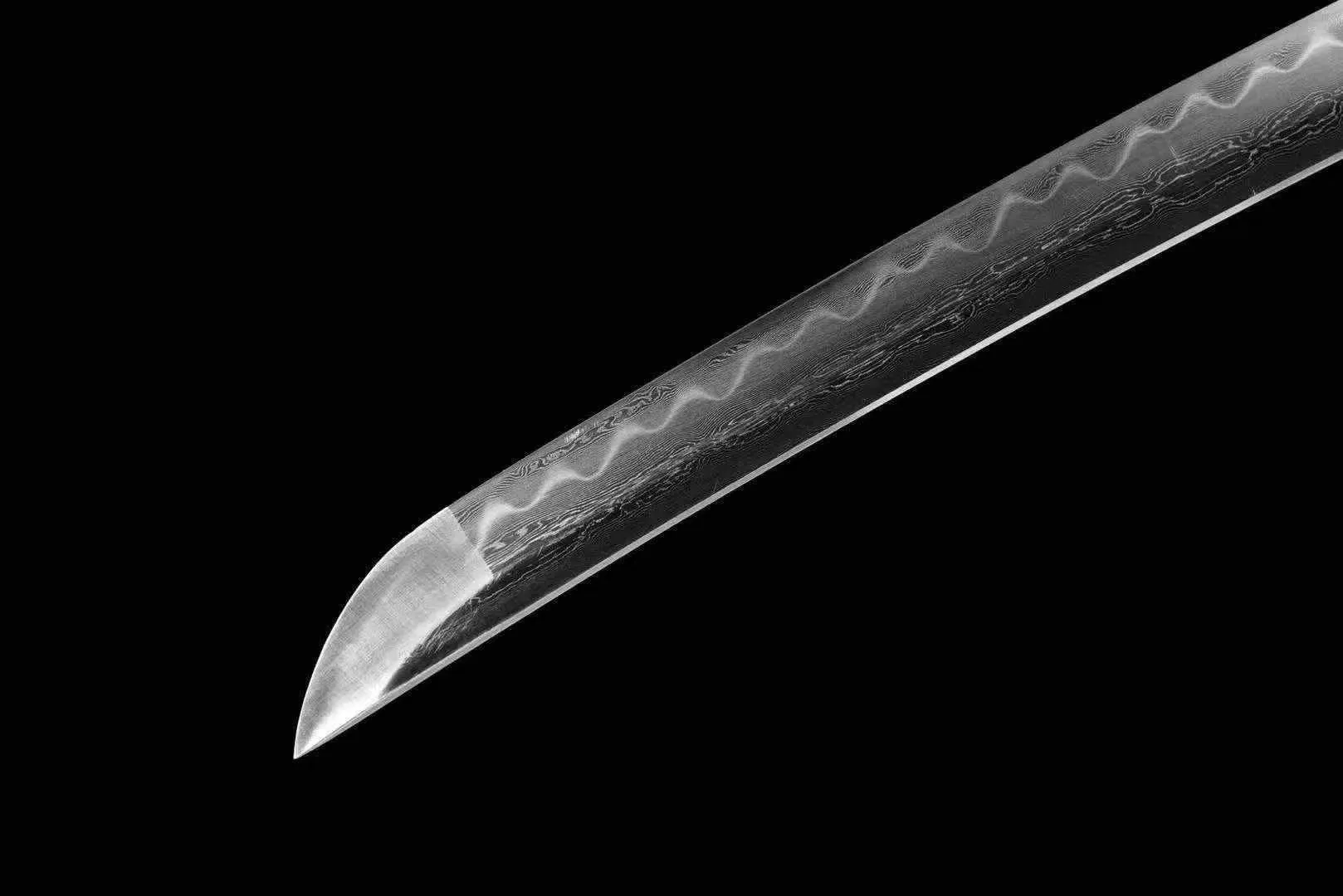 Loại kiếm: Tachi, rèn tay truyền thống , chất liệu lưỡi thép: Gấp Hoa Văn Damascus – độ cứng & độ sắc tiêu chuẩn, có thể tùy chỉnh theo yêu cầu