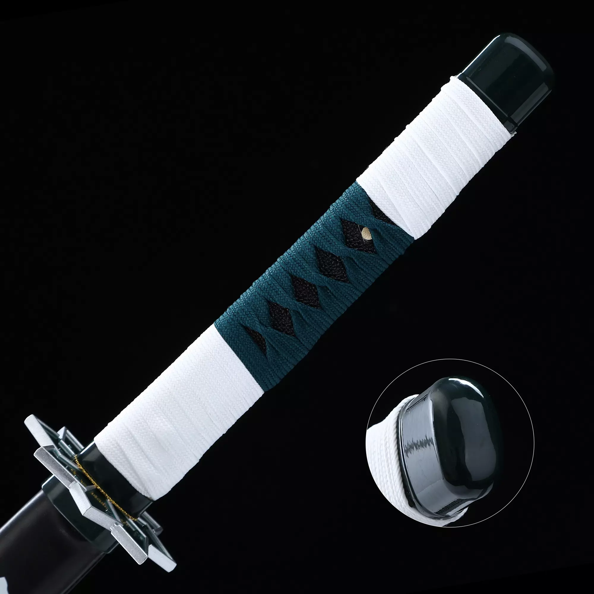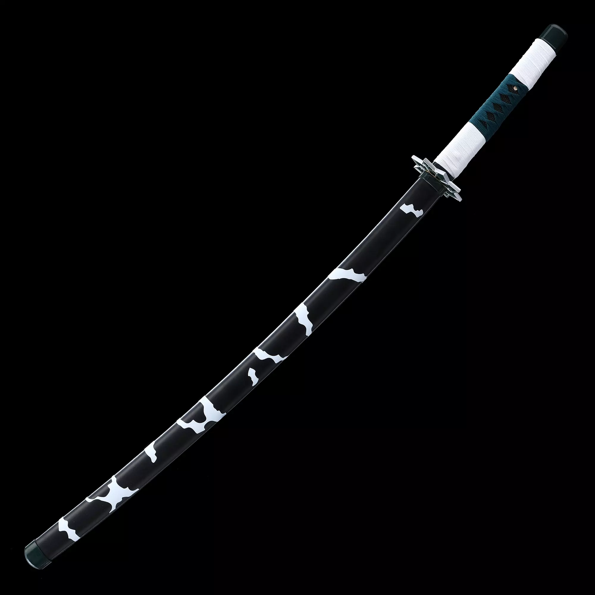 Vỏ gỗ phủ họa tiết da bò trắng – đen đặc trưng, bền, nhẹ và đẹp mắt khi trưng bày. Đây là mẫu kiếm dành cho fan Sanemi, người yêu sưu tầm kiếm anime chất lượng và muốn sở hữu một thiết kế mang đậm tinh thần Phong Trụ – mạnh, hoang dã và đầy uy lực.