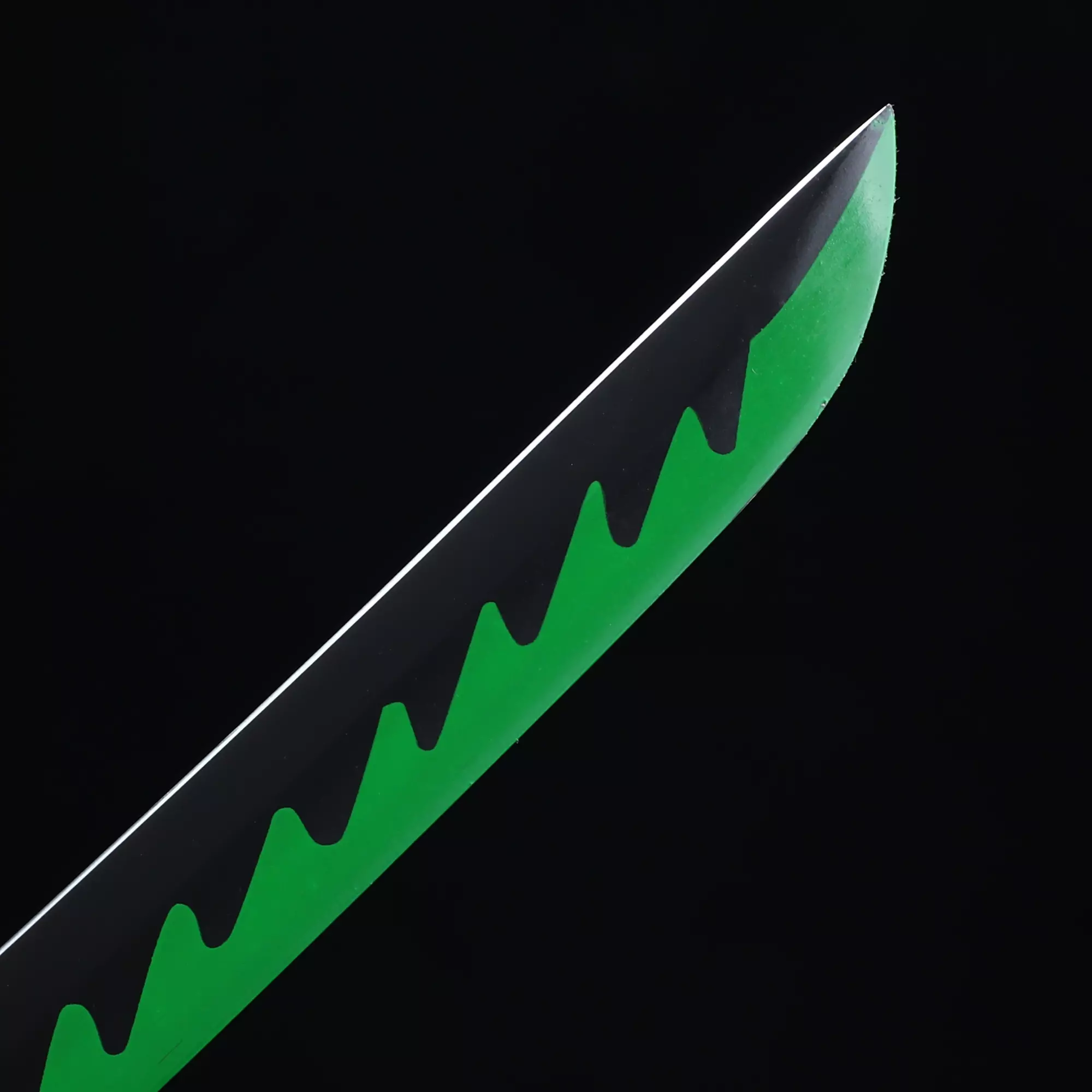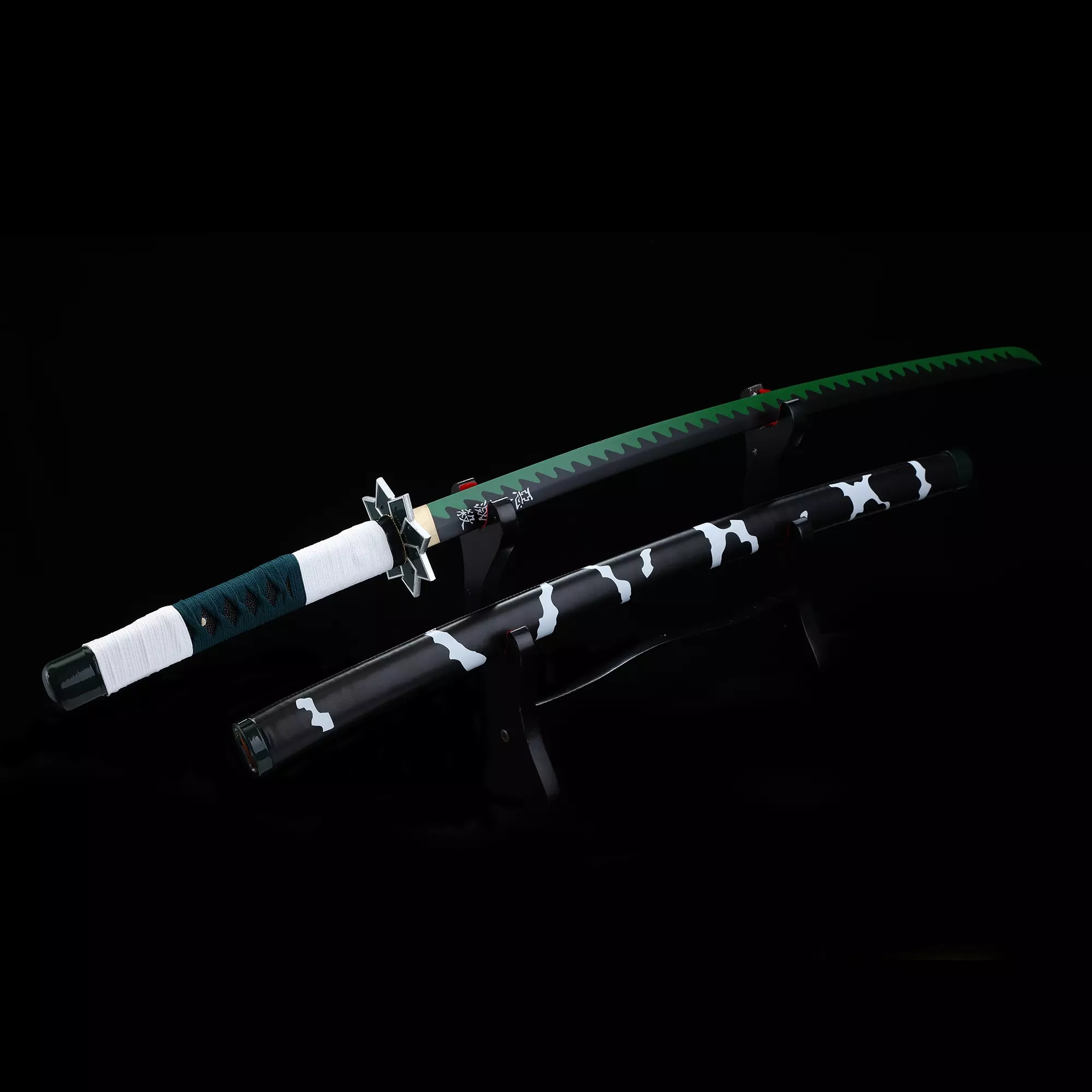 Thanh kiếm Phong Trụ Sanemi tái hiện từ nguyên tác Demon Slayer, với thiết kế mạnh mẽ và sắc thái “cuồng phong” đặc trưng. Lưỡi kiếm được rèn từ thép carbon, cho độ cứng ổn định và bề mặt sắc nét. Họa tiết răng gió màu xanh lá chạy dọc thân lưỡi tạo điểm nhấn nổi bật, đúng tinh thần của Sanemi – dữ dội, quyết liệt và không khuất phục.