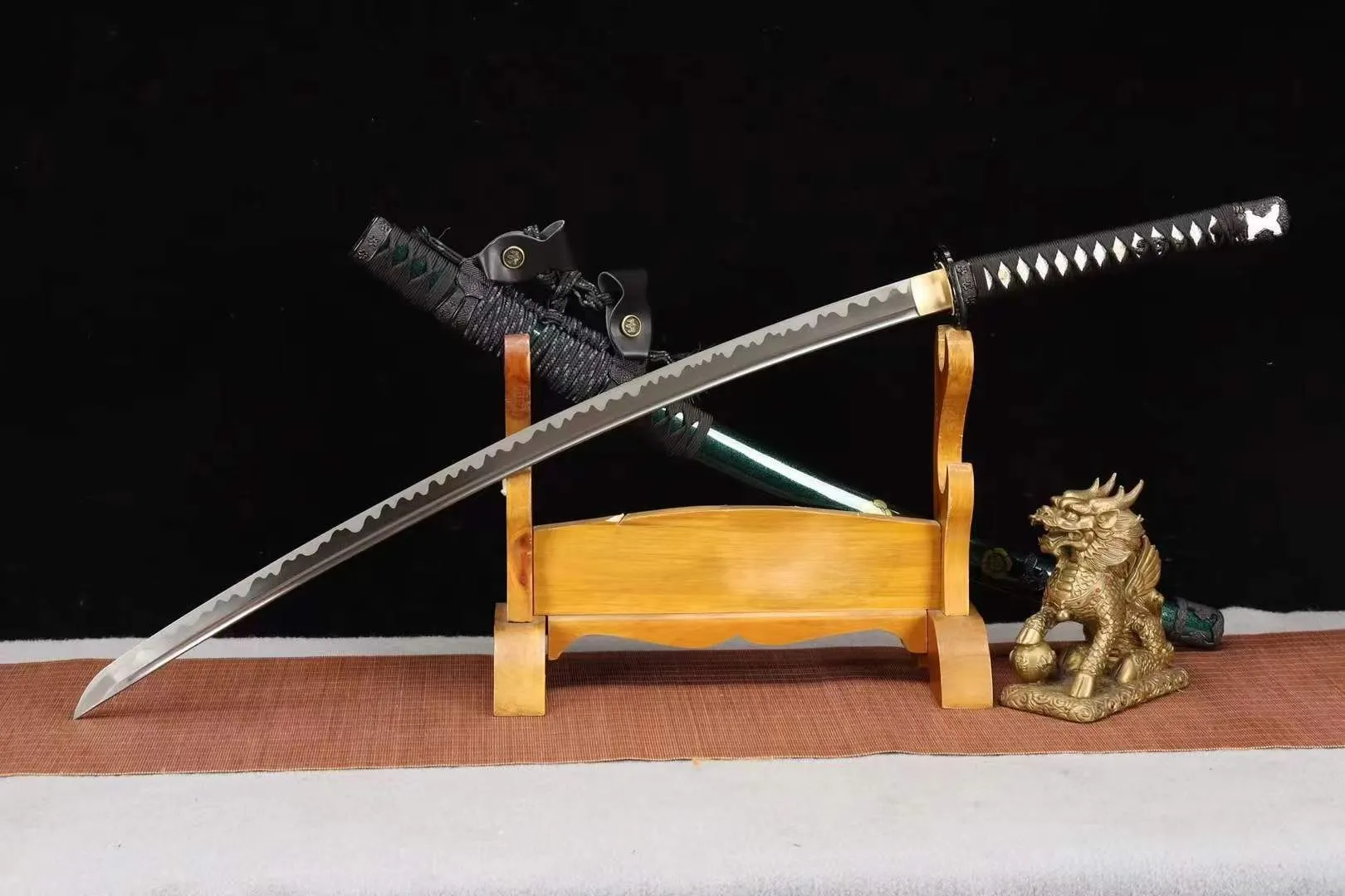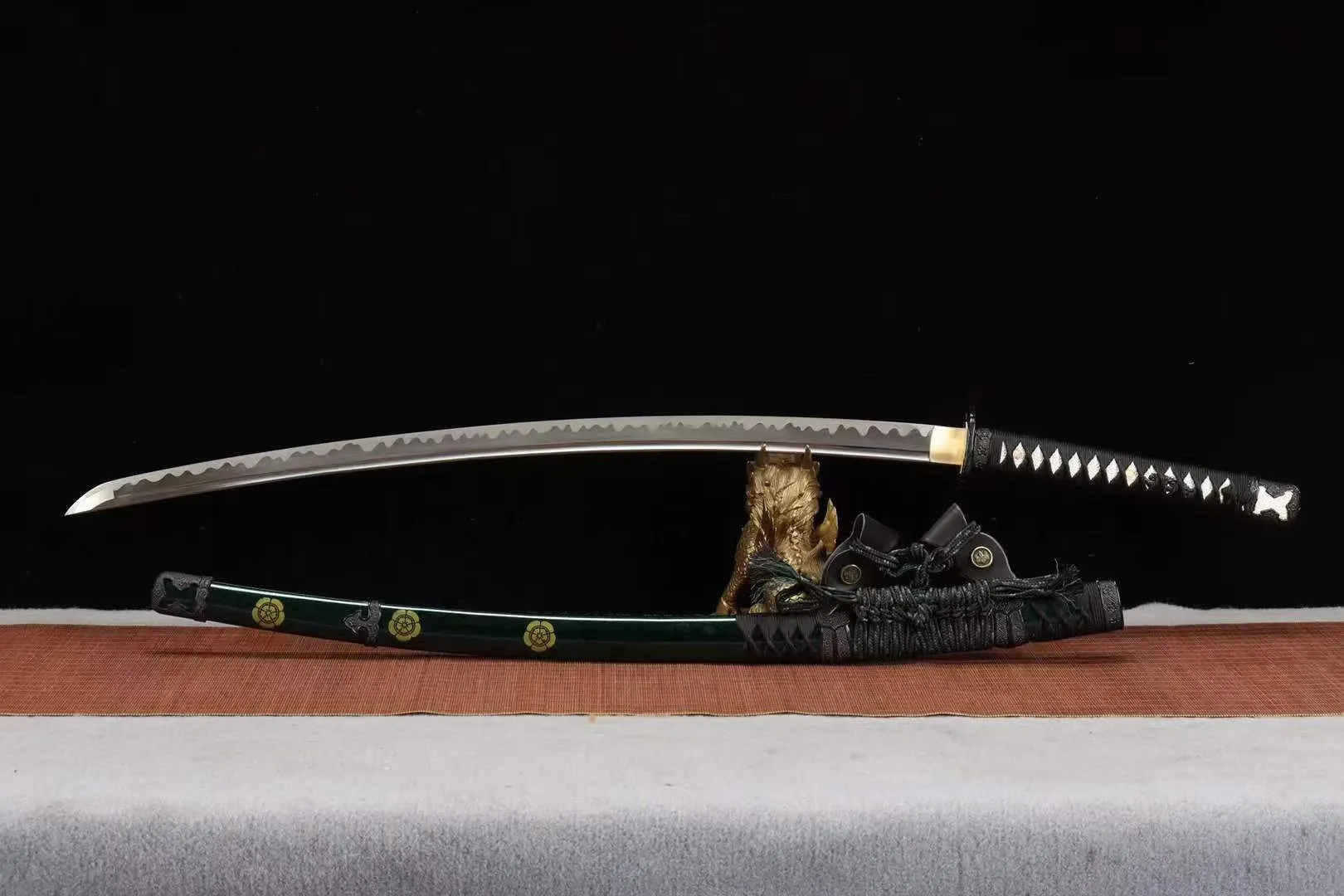 Loại kiếm: Tachi, rèn tay truyền thống , chất liệu lưỡi thép: 65MN – độ cứng & độ sắc tiêu chuẩn, có thể tùy chỉnh theo yêu cầu