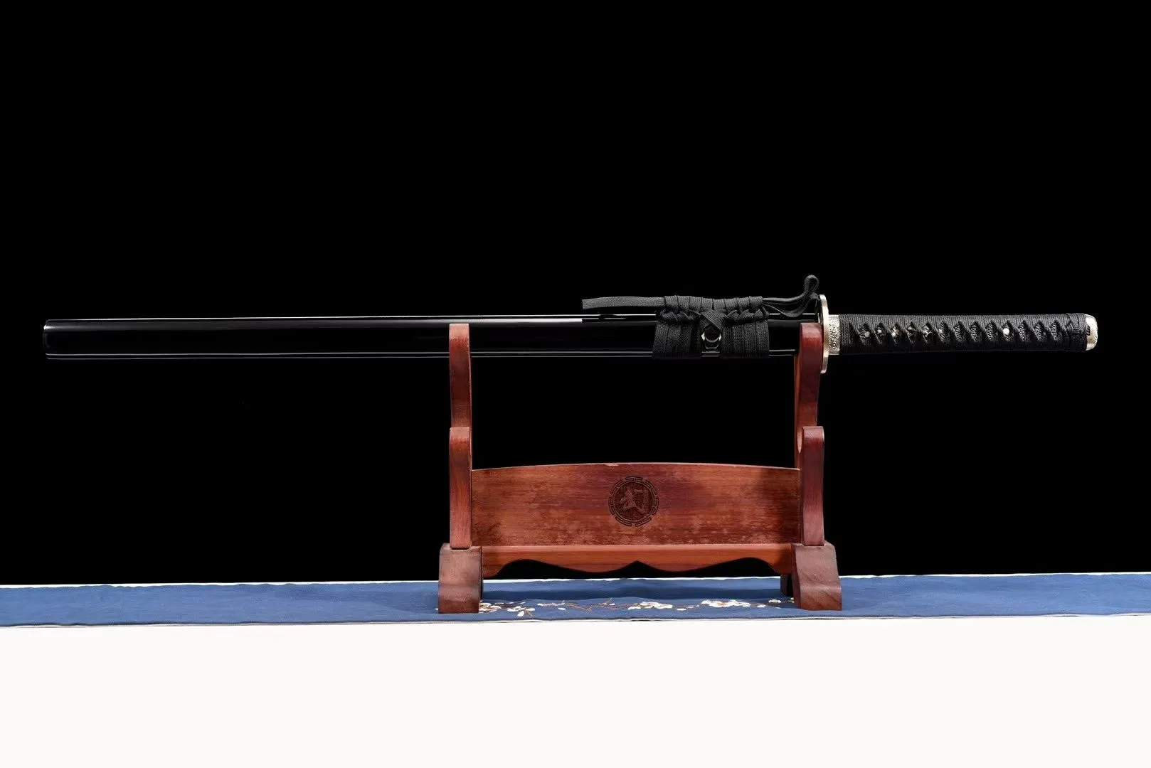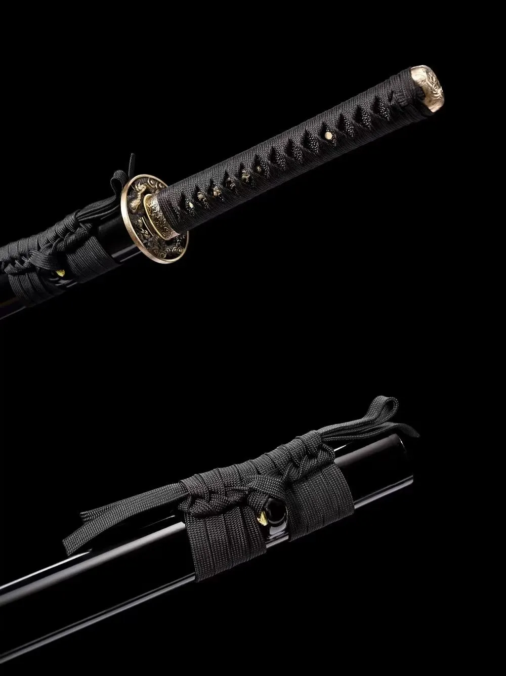 Tay cầm dài 27 cm, kết cấu chắc chắn, quấn dây truyền thống, phối hợp bộ habaki, tsuba và phụ kiện đồng thau chạm khắc tinh xảo. Bao kiếm gỗ sơn mài đi kèm dây treo hoàn thiện đồng bộ. Tổng trọng lượng khoảng 1,36 kg. Đây là lựa chọn phù hợp cho người chơi cần một Ninjato cân bằng giữa trưng bày và sử dụng, với độ hoàn thiện cao và kết cấu ổn định.