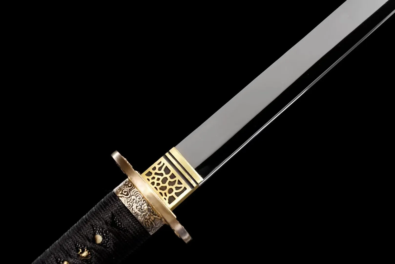 Loại kiếm: Ninjato, fulltang, rèn tay truyền thống , chất liệu lưỡi thép: Lò xo, đánh sáng bóng gương – độ cứng & độ sắc tiêu chuẩn, có thể tùy chỉnh theo yêu cầu