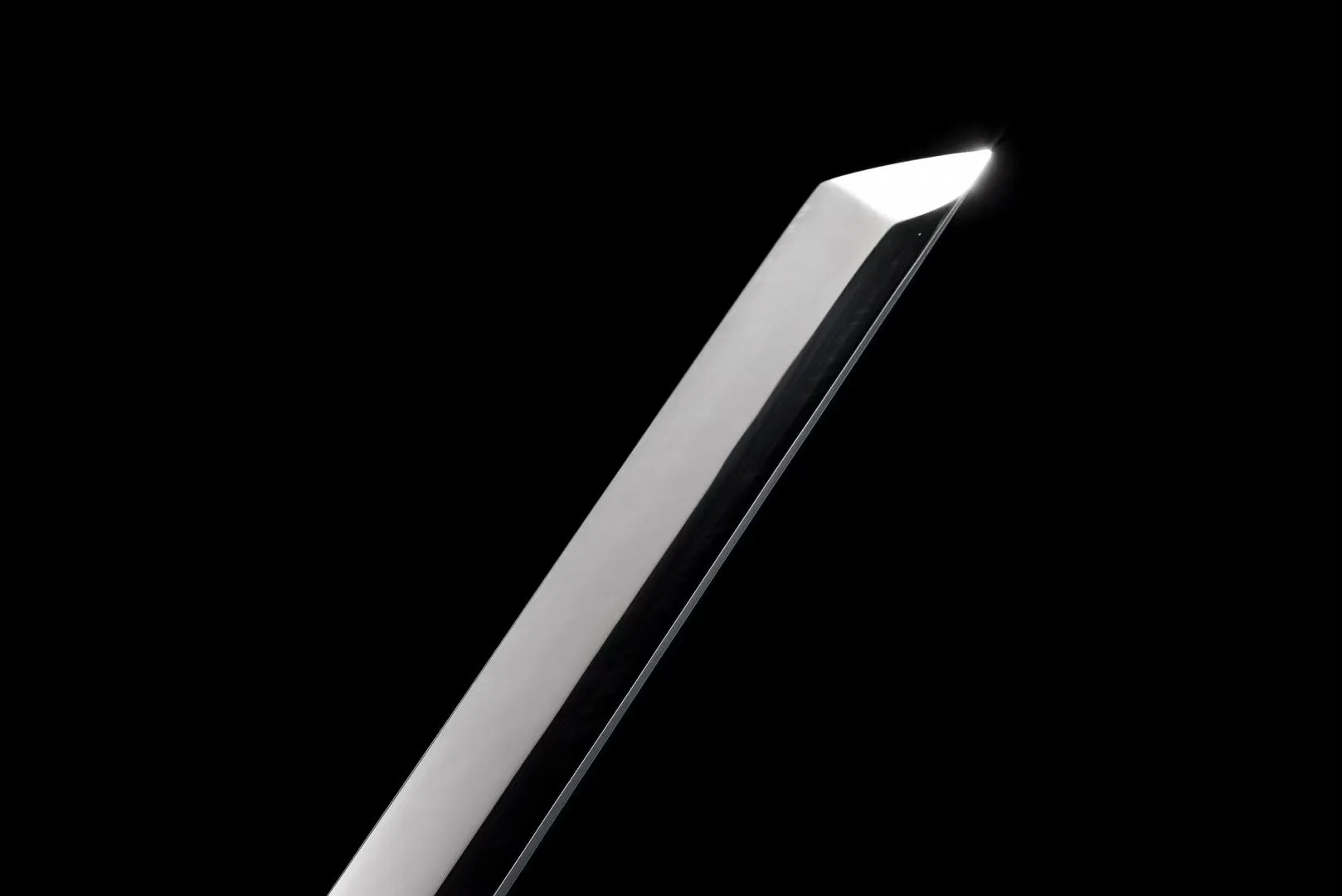 Lưỡi rèn tay từ thép lò xo, hoàn thiện đánh bóng gương thủ công, cho bề mặt phản chiếu rõ và sắc nét. Độ cứng công bố khoảng 60 HRC, cùng thông số tiêu chuẩn: tổng dài 103 cm, lưỡi 71 cm, rộng 3,2 cm, đảm bảo độ ổn định khi vung chém. Ninjato thể hiện rõ ưu điểm về độ cứng và khả năng giữ form khi chịu lực.
