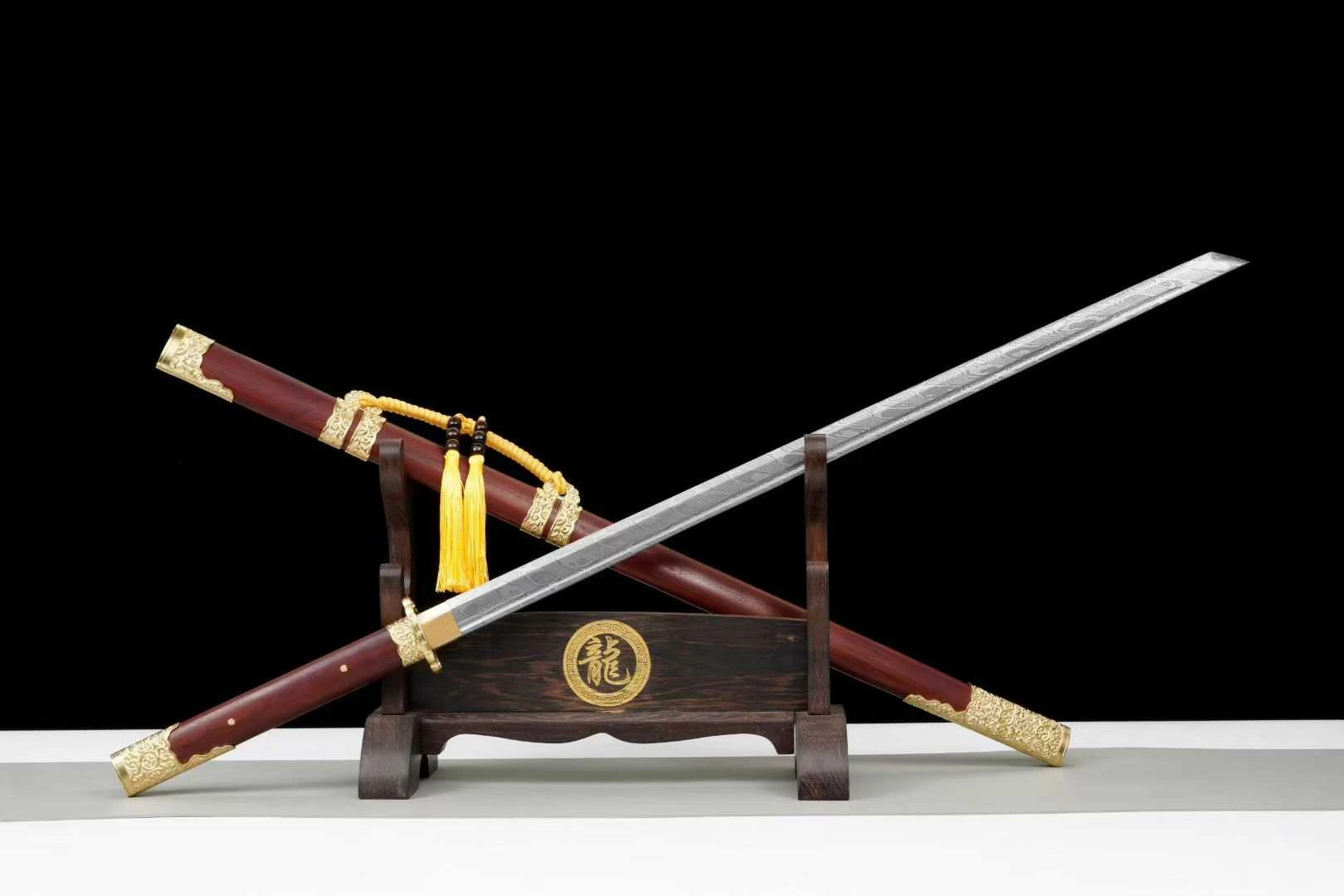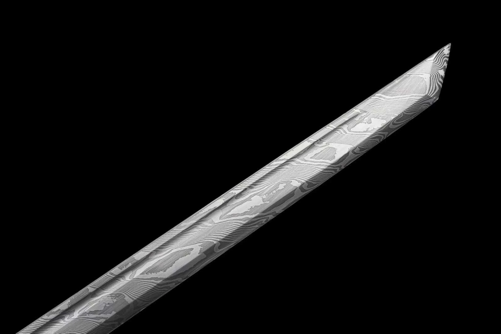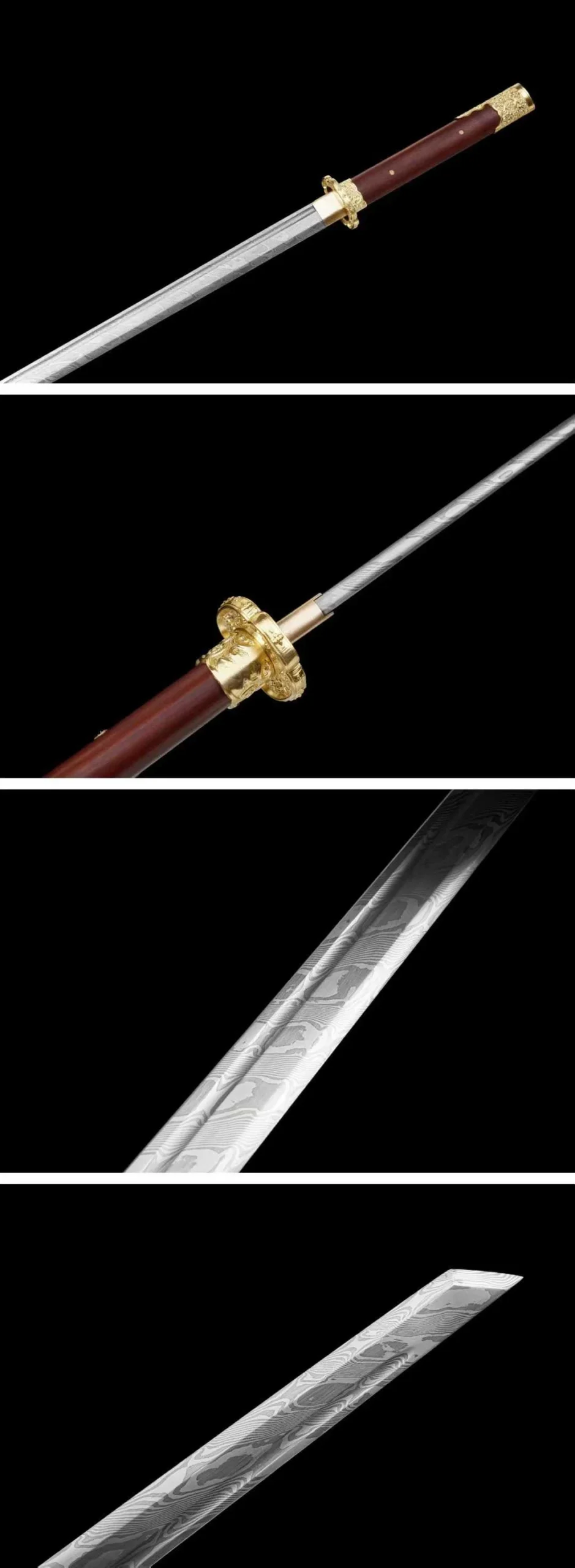 - Loại kiếm: Hán – rèn tay truyền thống , chất liệu lưỡi thép: Thép gấp hoa văn – độ bền cao & độ sắc tiêu chuẩn, có thể tùy chỉnh theo yêu cầu