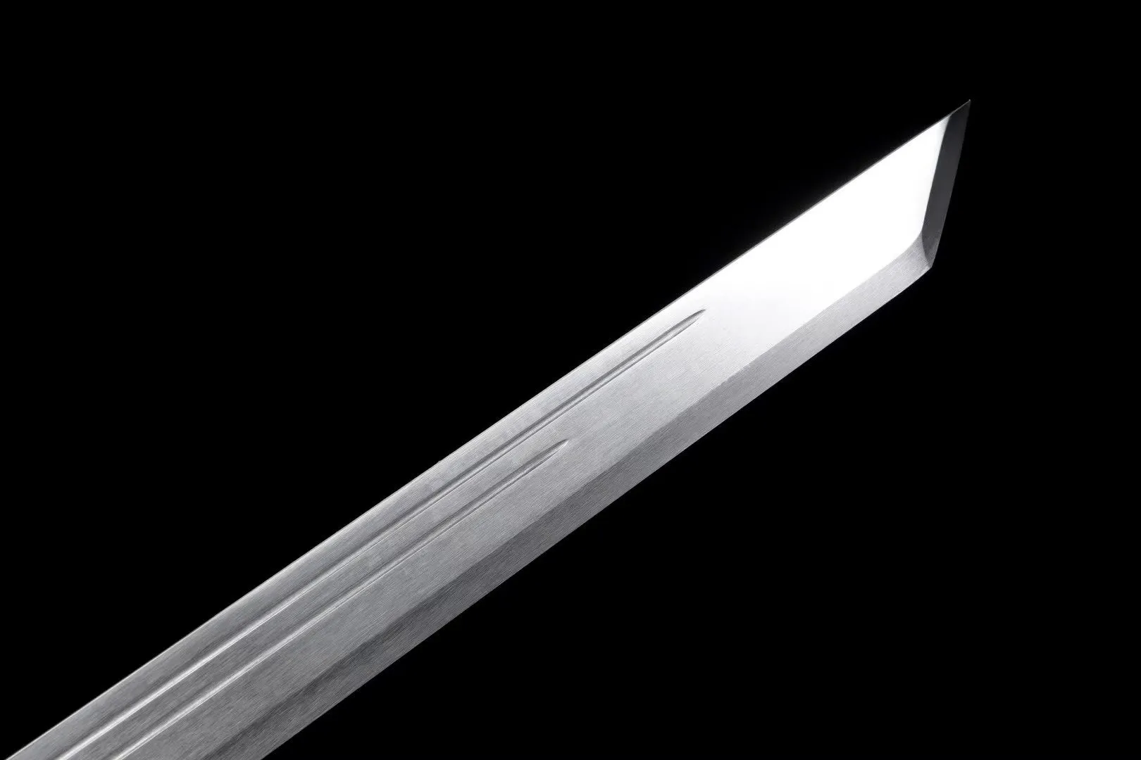 Lưỡi Hán Kiếm được rèn từ thép mangan, cho độ bền tốt, khả năng chịu lực ổn định và ít biến dạng khi sử dụng trong điều kiện thông thường. Bề mặt lưỡi được xử lý sáng, các đường rãnh chạy dọc giúp tăng chiều sâu thị giác, làm nổi bật phong cách cổ binh khí của Hán Kiếm. Phần mũi kiếm vuông vức, đúng tinh thần kiếm trấn thủ thời cổ.