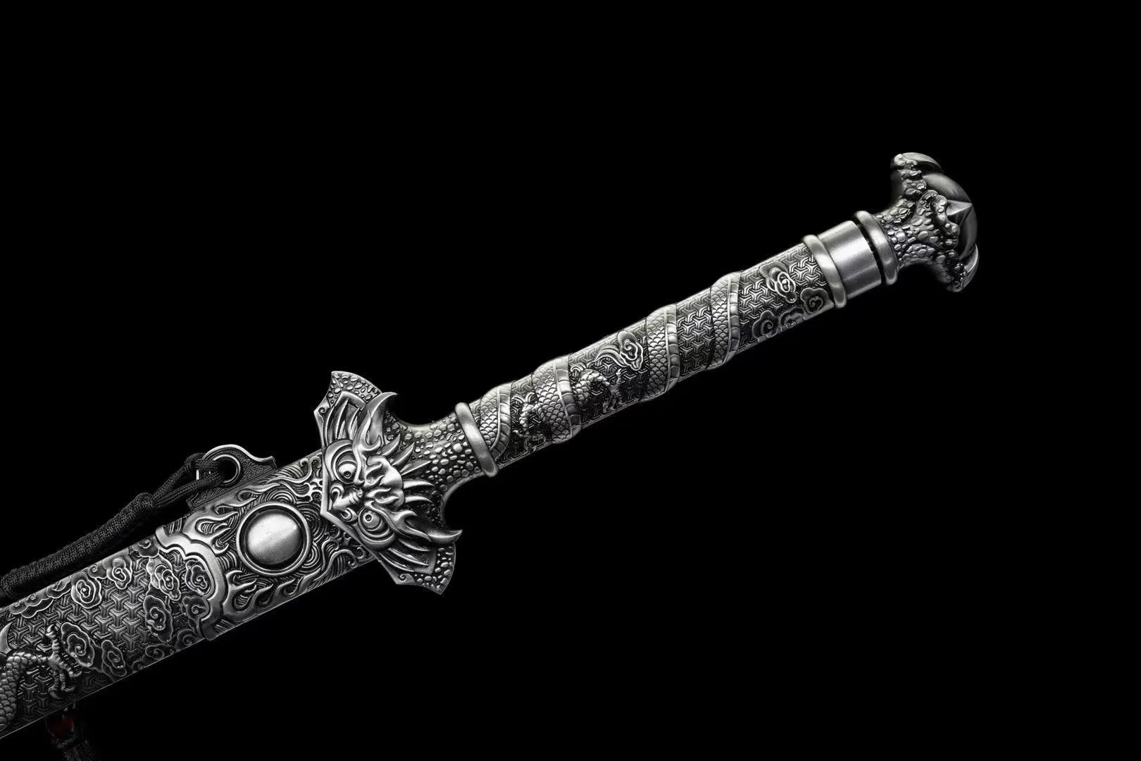 Thái Cổ Long Vệ Kiếm là mẫu Hán Kiếm mang phong cách cổ uy nghiêm, lấy cảm hứng từ hình tượng long thú trấn giữ, phù hợp cho trưng bày và sưu tầm. Tổng thể Hán Kiếm có dáng thẳng, bản lưỡi cân đối, đường nét dứt khoát, tạo cảm giác chắc tay và vững vàng ngay từ ánh nhìn đầu tiên. Đây là mẫu Hán Kiếm hướng đến giá trị thị giác và cảm nhận hình khối rõ ràng.