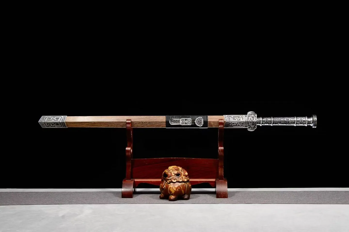 Vỏ Hán Kiếm làm từ gỗ nguyên khối, kết hợp tay cầm hợp kim chạm khắc hoa văn cổ, tạo tổng thể đồng bộ và vững chắc. Thái Huyền Trấn Kiếm phù hợp để trưng bày, decor không gian, làm quà tặng cho người yêu Hán Kiếm phong cách cổ trang trang nghiêm và mạnh mẽ.