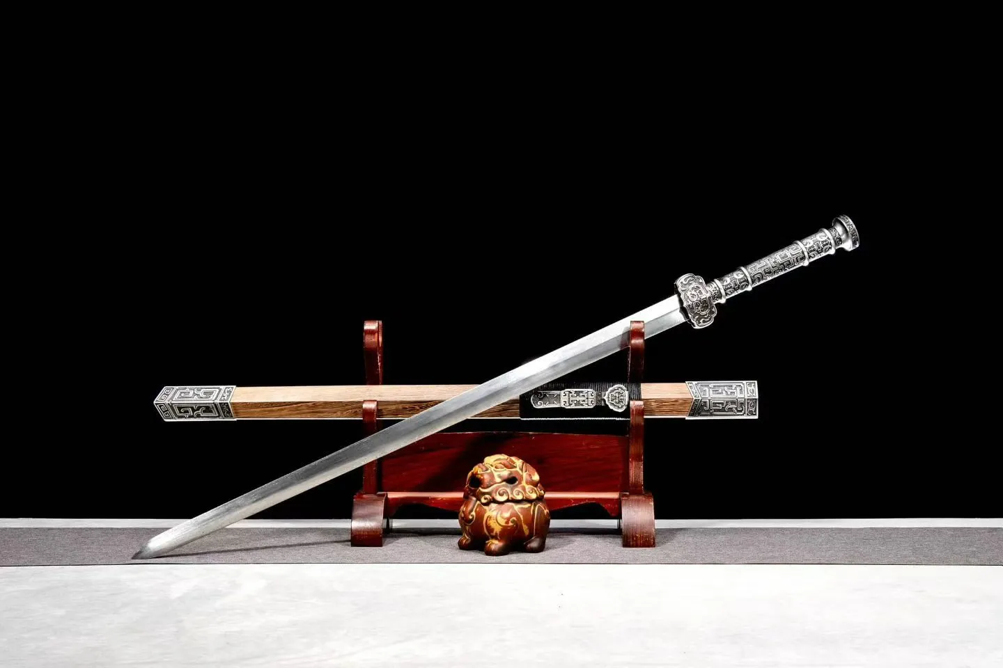 Thái Huyền Trấn Kiếm là mẫu Hán Kiếm mang phong cách cổ điển, nhấn mạnh đường nét thẳng, dứt khoát và bố cục cân đối đặc trưng của Hán Kiếm truyền thống. Tổng thể thanh kiếm tạo cảm giác trang nghiêm, chắc chắn, phù hợp trưng bày trong không gian cổ phong hoặc sưu tầm cá nhân. Thiết kế của Hán Kiếm này hướng đến sự rõ ràng trong hình khối, không cầu kỳ nhưng vẫn giữ được chiều sâu thị giác.