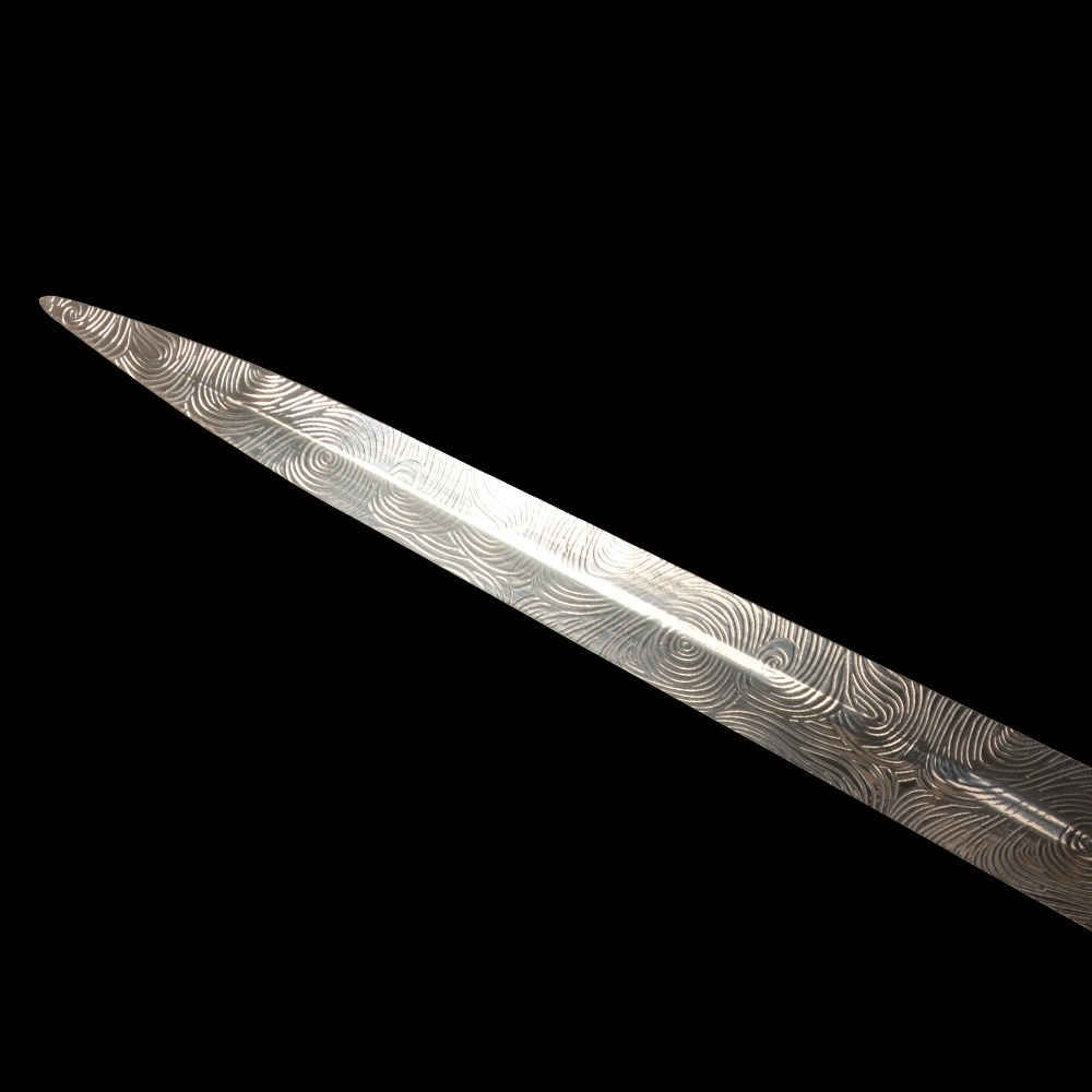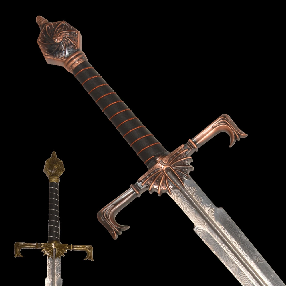 Blackfyre là thanh kiếm huyền thoại từng được rèn từ thép Valyria và truyền lại qua nhiều thế hệ của nhà Targaryendòng máu rồng thống trị Westeros. Đây là thanh đại kiếm sở hữu lưỡi thép không gỉ xử lý vân phong cách Valiryan, mạnh mẽ, huyền bí và đầy khí chất vương giả. Phần tay cầm bọc dây đen chỉ đỏ, chuôi lục giác khắc nổi hình lốc xoáy cổ đại. chắn tay tạo hình đôi cánh rồng tỏa ra hai bên, gấp khúc như móng vuốt của sinh vật cổ xưa. Mọi chi tiết đều thể hiện sự sắc sảo và quyền lực, xứng đáng với truyền thuyết về “kiếm của những vị vua”- Tương truyền, Blackfyre từng được Aegon Chinh Phục sử dụng khi thống nhất Bảy Vương Quốc. Sản phẩm phù hợp để trưng bày, sưu tầm, làm đạo cụ phim ảnh, decor chủ đề Game of Thrones.
