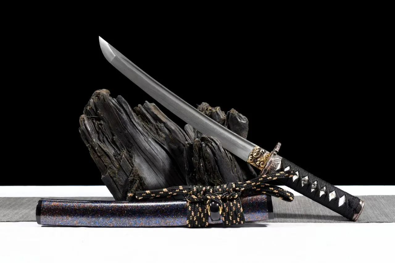 Loại kiếm: Tanto thủ công, fulltang, rèn tay truyền thống , chất liệu lưỡi thép: Thép Hoa Văn khắc laser – cứng cáp, độ sắc tiêu chuẩn, có thể tùy chỉnh theo yêu cầu
