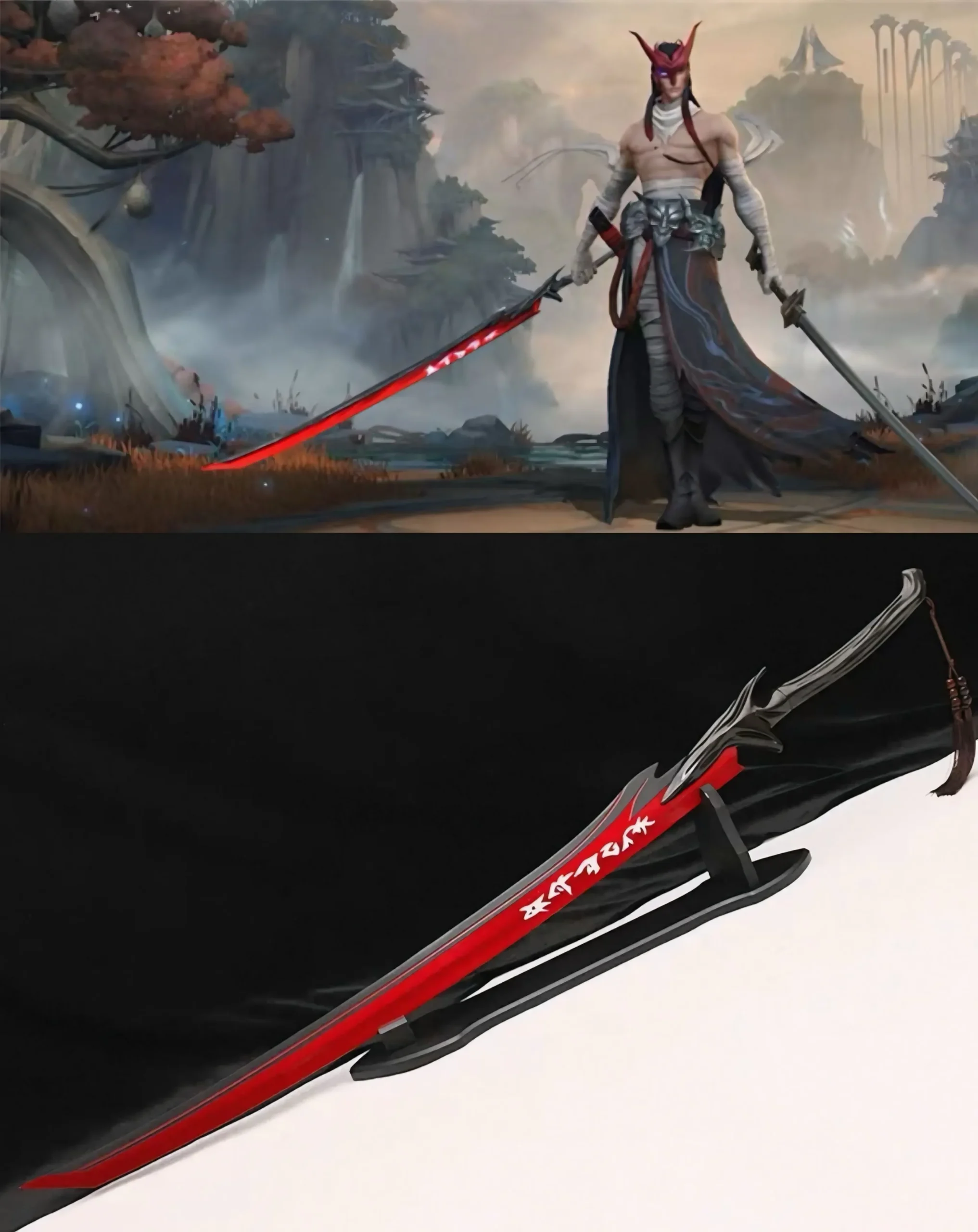 Thanh kiếm của Yone là phiên bản mô phỏng lấy cảm hứng trực tiếp từ nhân vật Yone trong game Liên Minh Huyền Thoại, được thiết kế theo phong cách fantasy hiện đại, phù hợp cho trưng bày, sưu tầm và cosplay. Tổng thể thanh kiếm mang tông đỏ – đen đặc trưng, tạo cảm giác sắc lạnh, mạnh mẽ và đậm dấu ấn nhân vật.