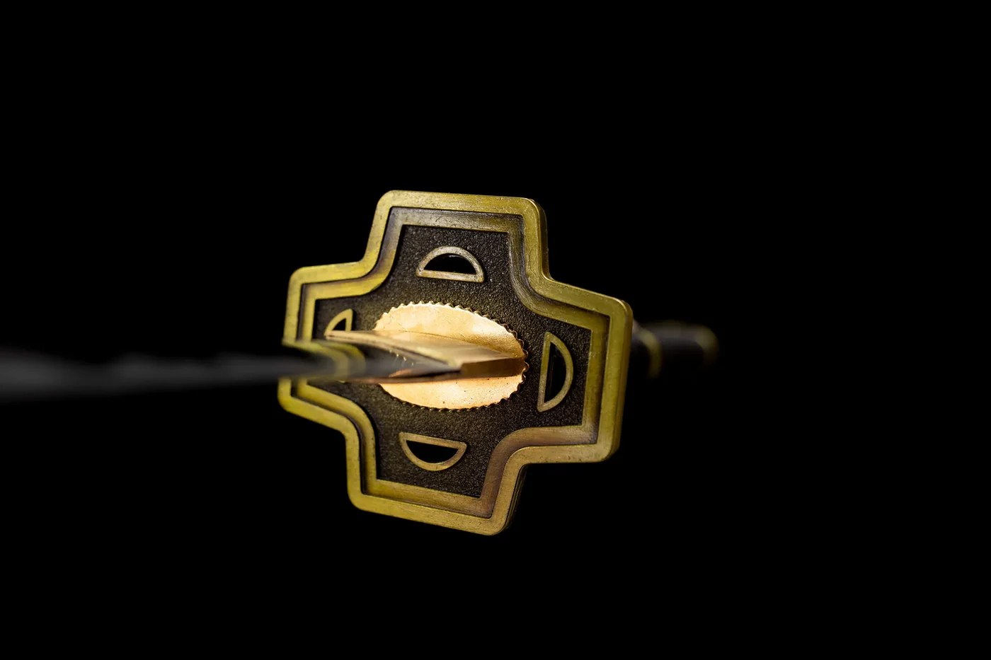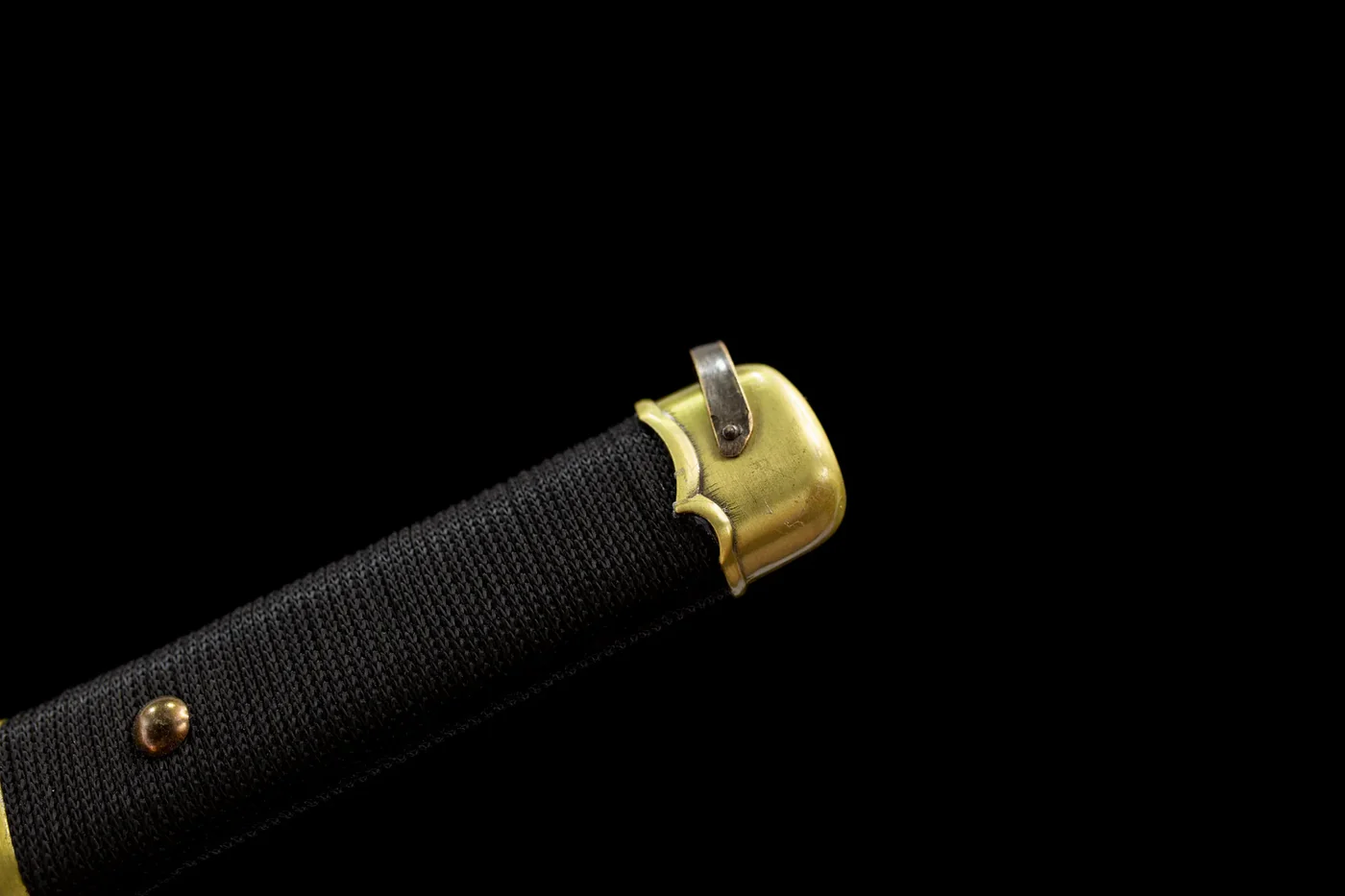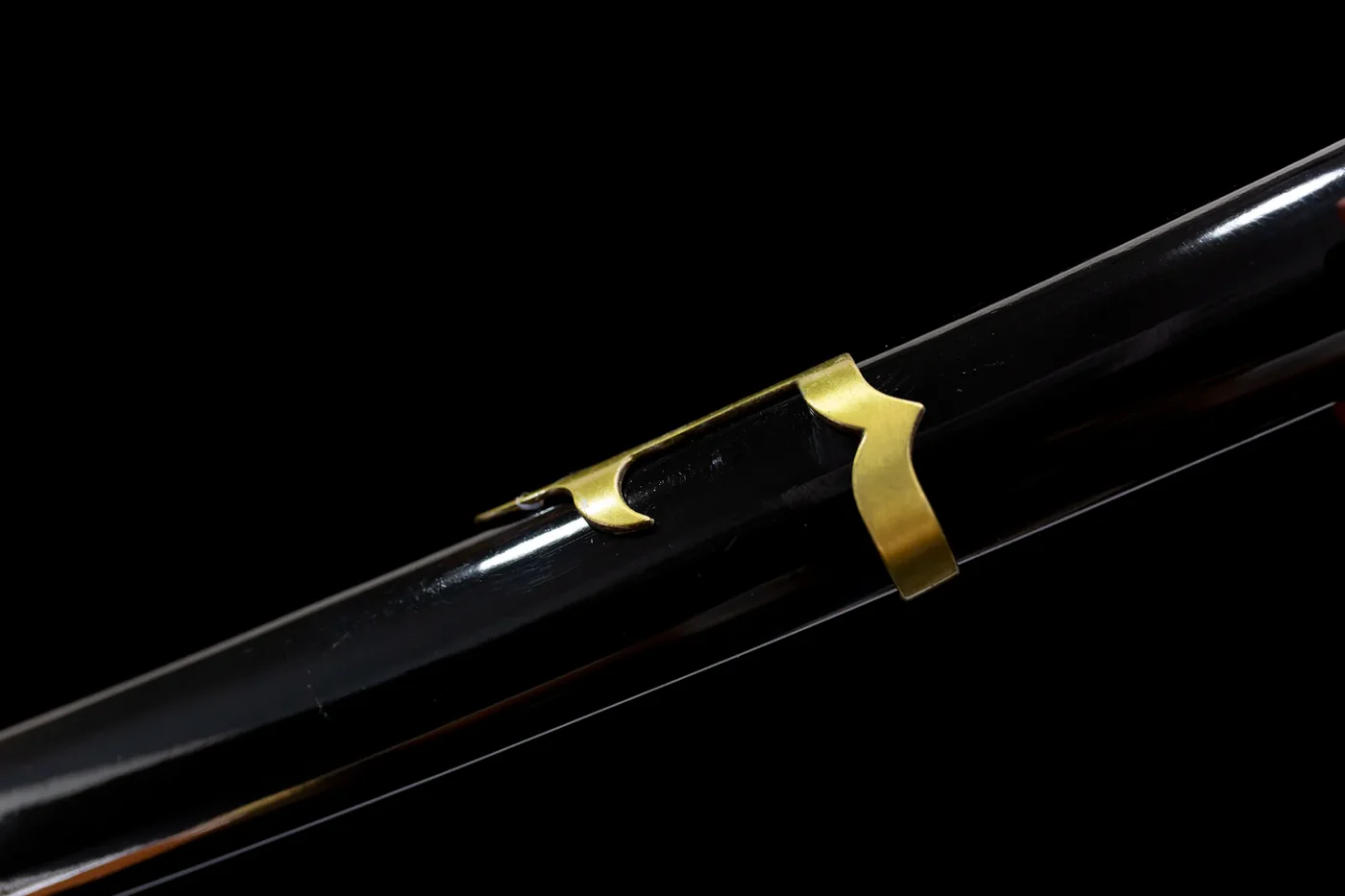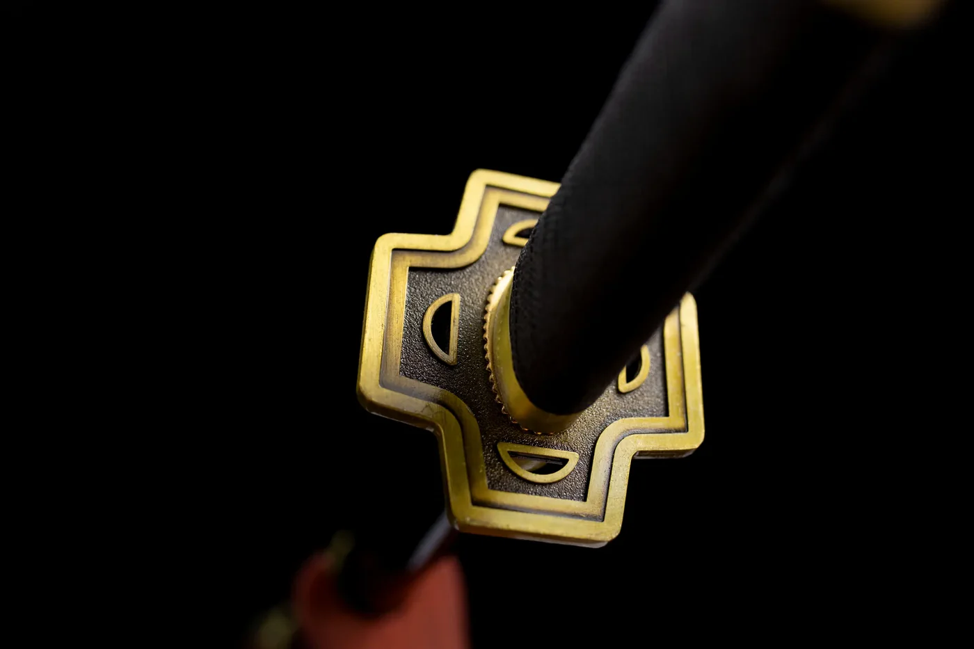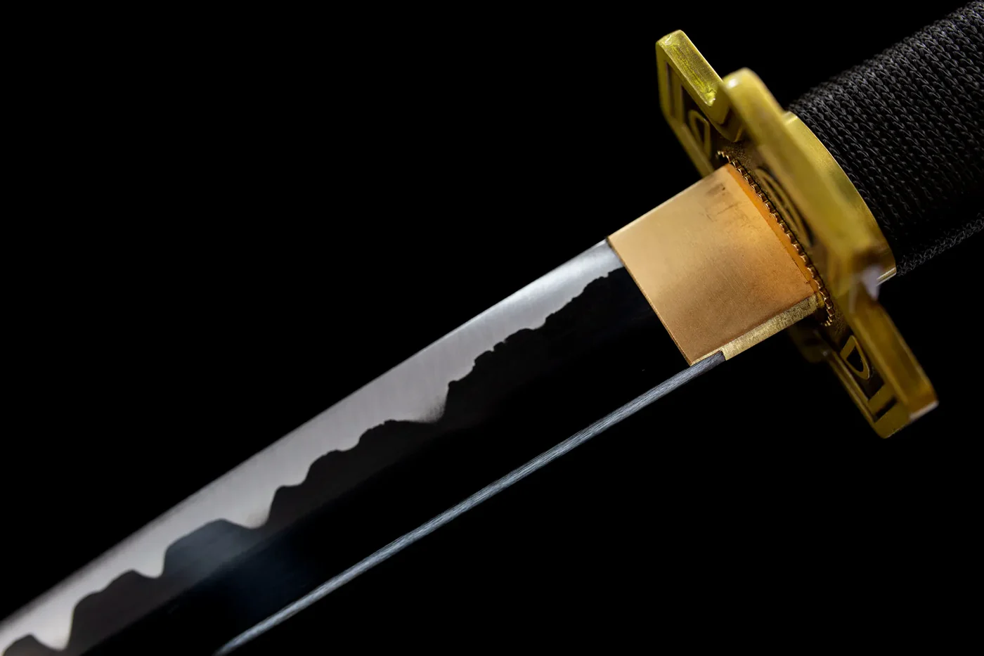 Được lấy cảm hứng và tạo ra phiên bản phục dựng Yubashiri Katana tái hiện hình ảnh thanh kiếm nổi tiếng từng được Zoro sử dụng trong bộ truyện One Piece. Lưỡi kiếm katana được rèn từ thép carbon 1060, nổi bật với độ cong chuẩn mực và đường hamon giả sắc nét chạy dọc sống lưỡi, tạo nên hiệu ứng thị giác đầy chiều sâu. Lưỡi có độ dày và cân bằng tốt. Tsuba (chắn tay) thiết kế dạng thập tự viền vàng đồng trên nền đen nhám, chạm khắc hoa văn đặc trưng của Yubashiri, tạo điểm nhấn mạnh mẽ và dễ nhận diện. Tsuka (chuôi kiếm) được quấn dây đen trơn gọn gàng, chắc chắn, kết hợp với lớp samegawa (giả da cá đuối) ẩn bên dưới. Fuchi, kashira và habaki bằng hợp kim xi vàng đồng, đồng bộ với chắn tay(tsuba) để tạo nên tổng thể sắc nét và hài hòa. Saya (vỏ kiếm) phủ lớp sơn mài đen bóng, kết hợp các khớp nối kim loại màu vàng đồng được gia công tinh xảo, giúp tăng tính thẩm mỹ và độ bền. Yubashiri Katana là thanh katana cho những người yêu thích One Piece, phù hợp để tập luyện nhẹ nhàng, sưu tầm, trưng bày, cosplay hoặc sử dụng như đạo cụ nhiếp ảnh.